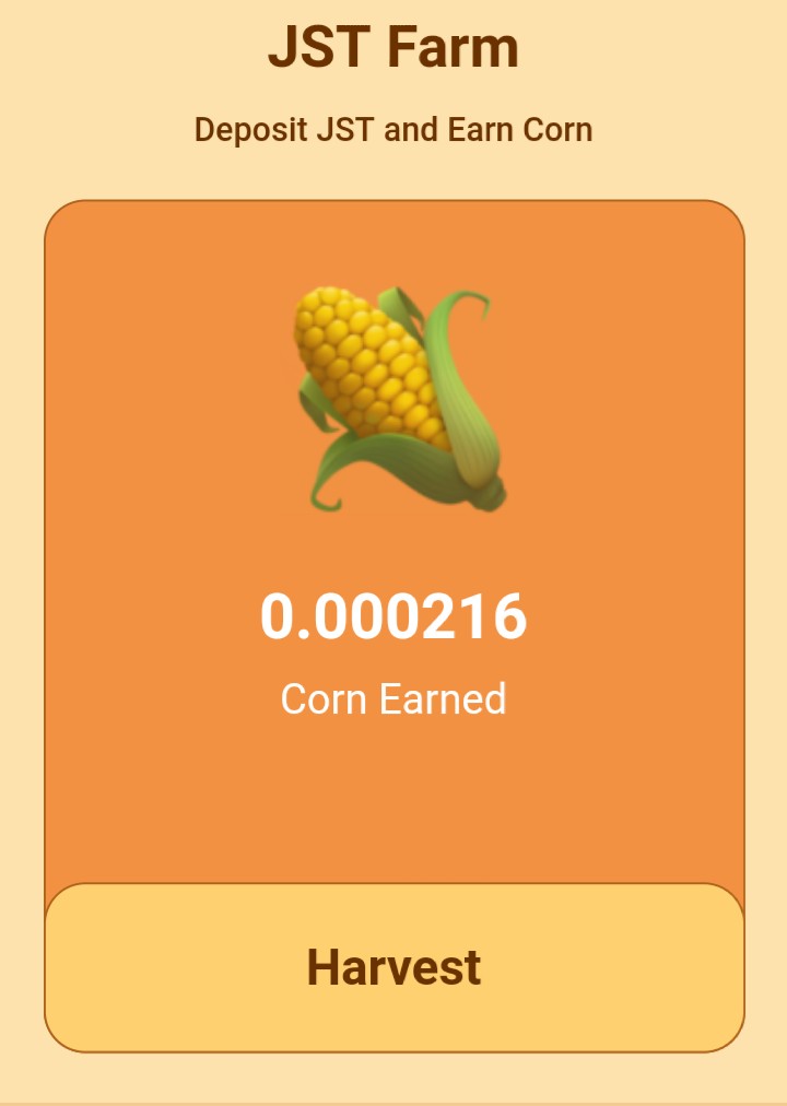 I finally got in on the action and I have been farming Corn🌽 (which goes for a current market price of $640 down from about $1400) through Staking JST.