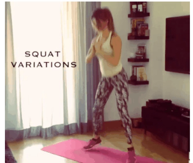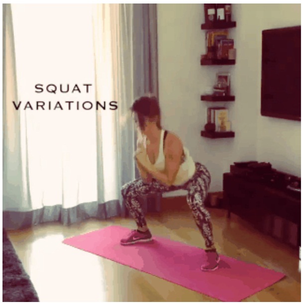 Variacion de Sentadillas 15 x 3 Repeticiones. Este ejercicio además fortalecerá y marcará súper bien tus piernas en un periodo muy corto.