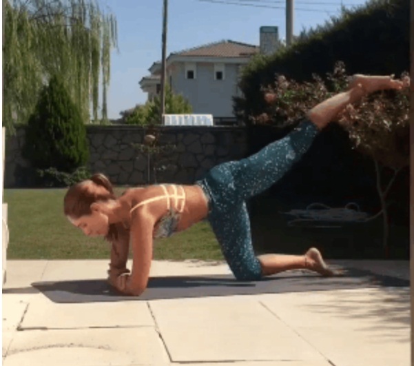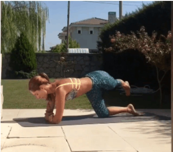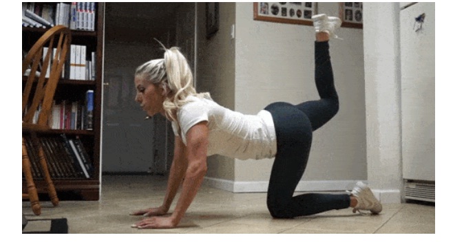 Colocarte en cuatro y subir hacia arriba la pierna Con cada pierna haz 10 x 3 repeticiones. Es súper importante que mantengas arriba la pierna mínimo 2 segundos en cada movimiento. Si sientes que literalmente te quema el músculo, entonces lo estarás haciendo bien.
