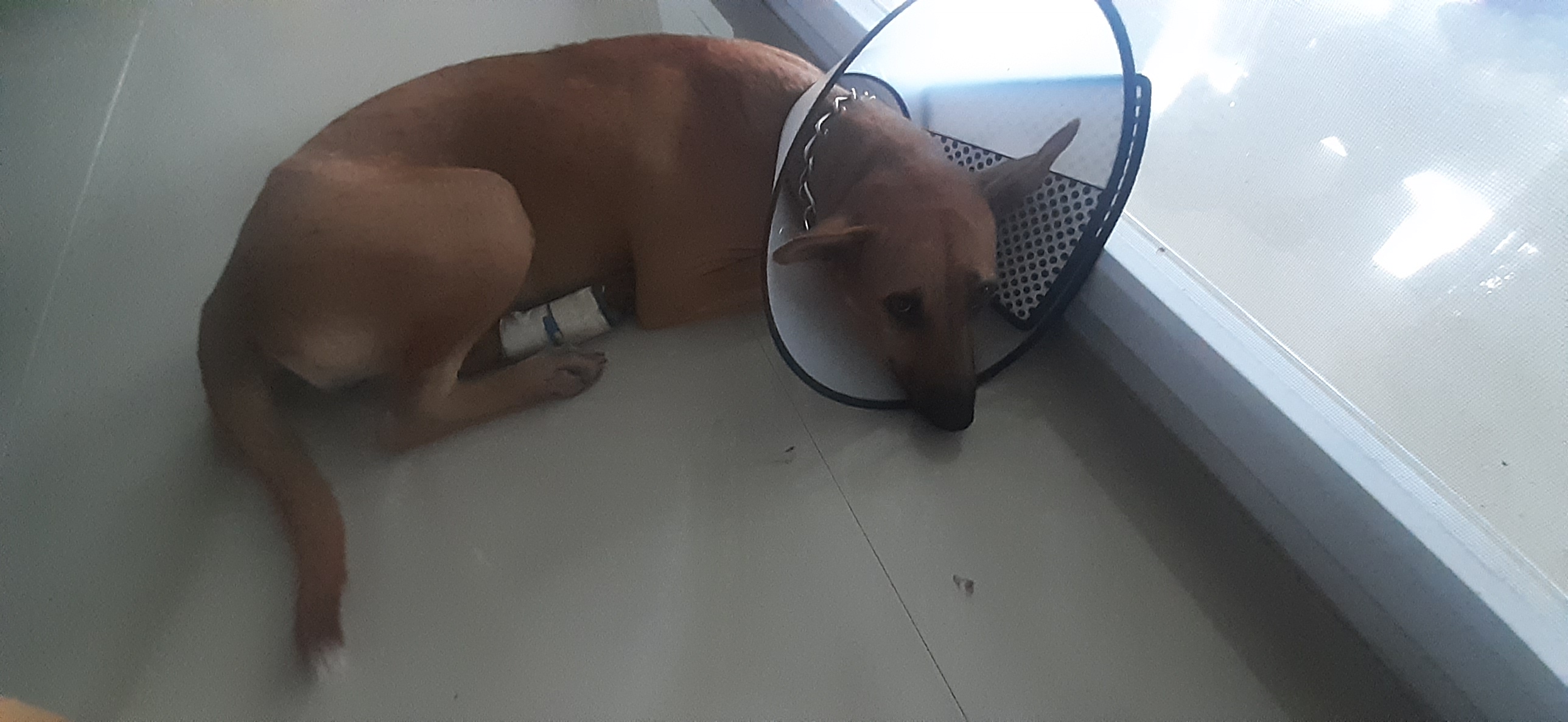 She is 7 months old and never went to the vet before that injury, she is very scared, furstrated and depressed....