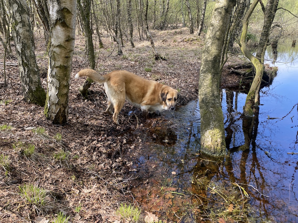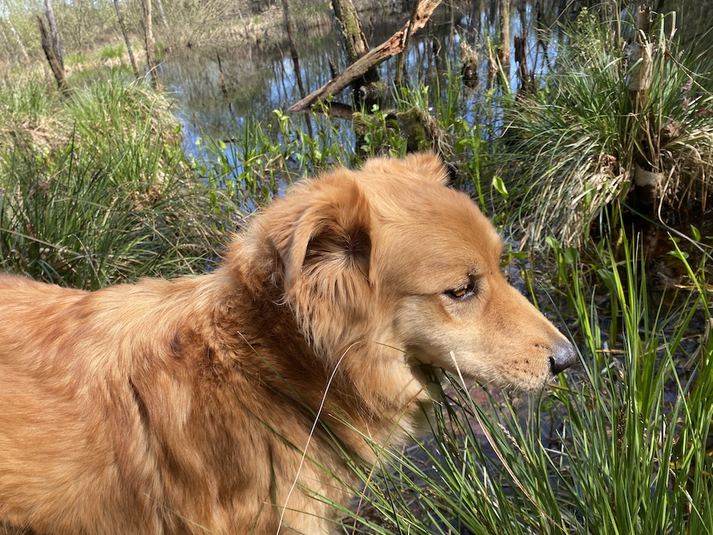 Aber jetzt darf ich endlich mal wieder. Mit einem großartigen Abenteuer habe ich zwar nicht aufzuwarten, aber es gab endlich mal wieder einen Rudelausflug. Ich bin nicht mal - wie gewohnt - der Fotostar, konnte Frauchen aber davon überzeugen, dass sie die ganzen Hinweisschilder im Tarbeker Moor nicht lesen muss (Hat sie sowieso schon 100x gemacht, wird sie senil?), weil alles im Internet steht. Sie soll doch mal ruhig den Moment genießen, wie wir Hunde das grundsätzlich tun. Klaro, schön Fotos schießen, die kann ich dann verbraten...