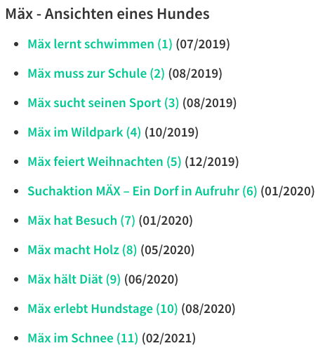 Wow (wau), das war bereits mein zwölfter Beitrag! Zugegebenermaßen habe ich schon Brillanteres von mir gegeben - wer daran interessiert ist und mich noch nicht wirklich kennt, kann ja mal in Frauchens Index stöbern. Oh ja, es lohnt sich - geht schließlich um mich!
