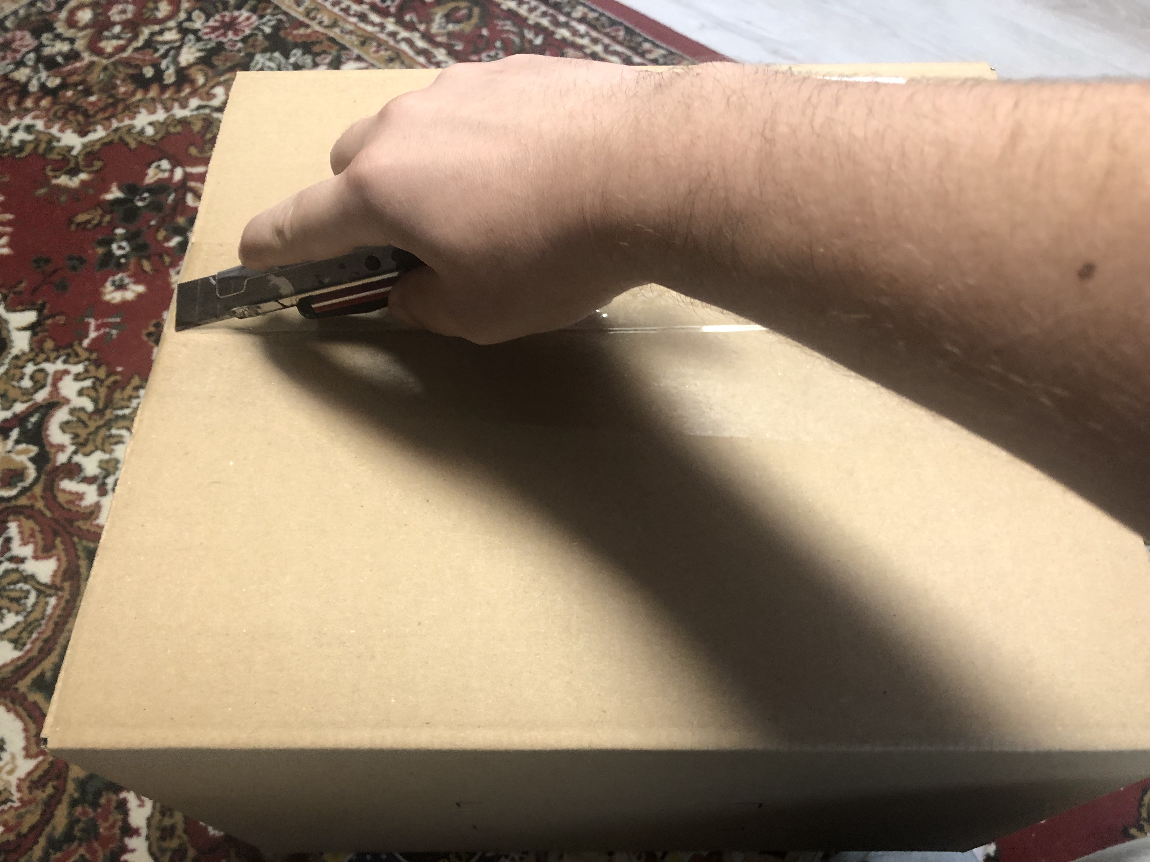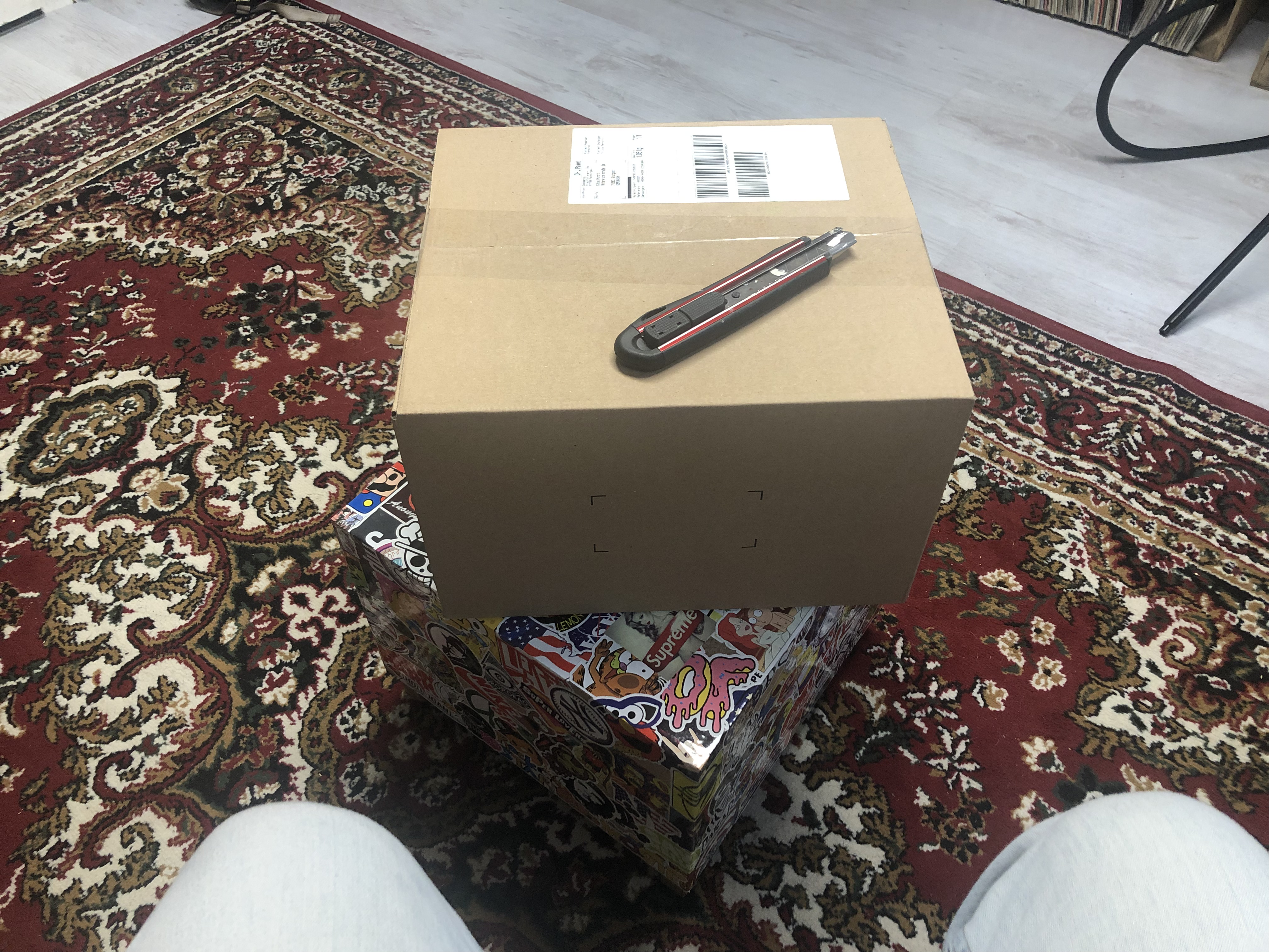 Also gleich mal 'n Cuttermesser gesucht und das tolle Paket aufgestellt. Man ist ja jetzt erwachsen und reißt das Paket nicht unkontrolliert auf 😅