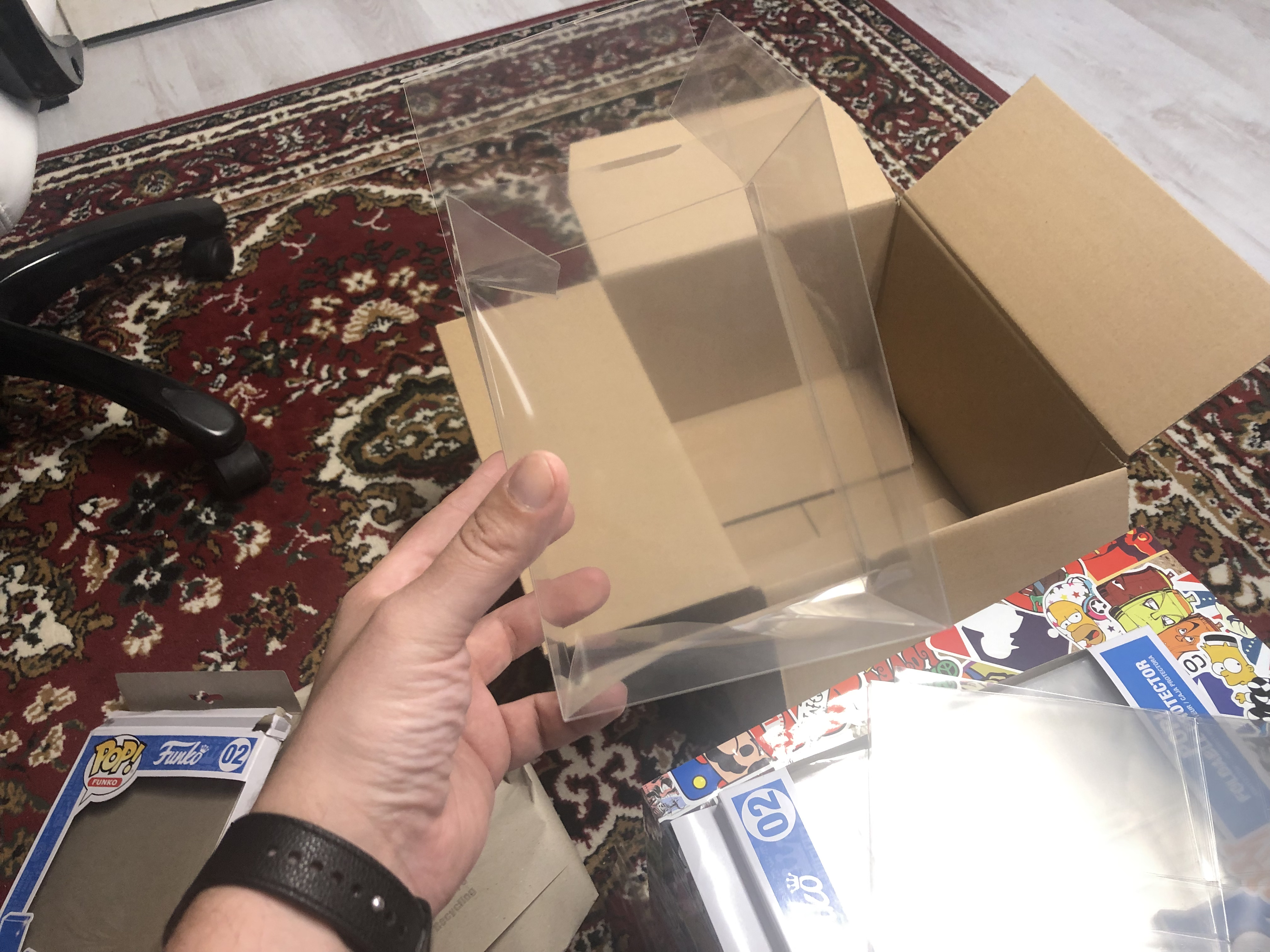 Nun ja... nochmal alle drei Figuren auf Unversehrtheit überprüft, die mitbestellten Protektoren ausgepackt und zusammengefaltet, damit ich die Figuren gleich verpacke um sie vor Dreck und bösen UV-Strahlen zu schützen. Ein NERD möchte ja lange was von seinen Schätzen haben 😃