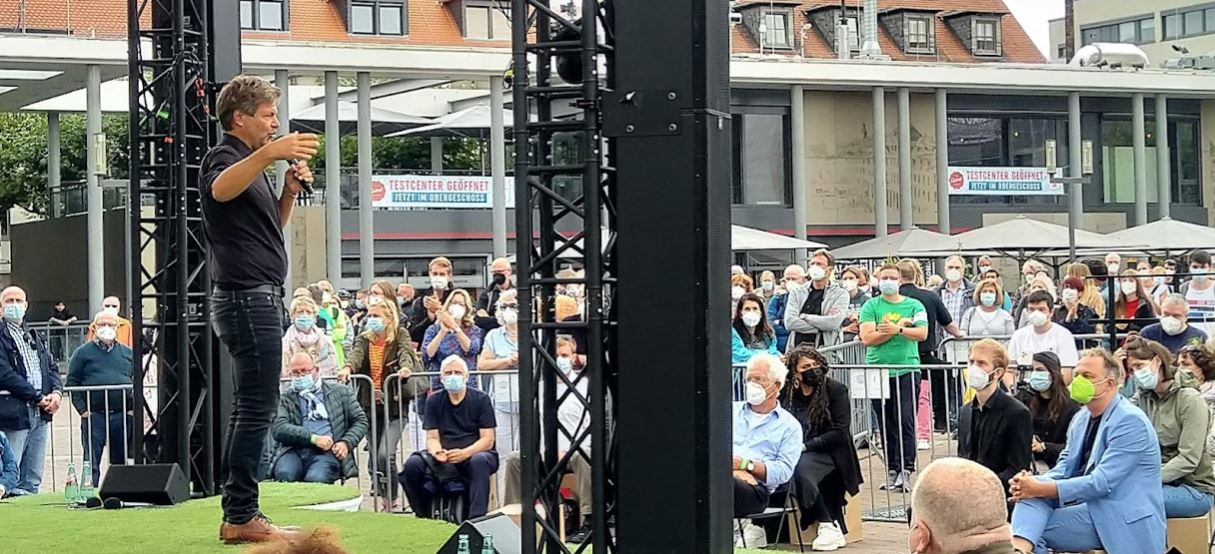 Grüne Spitzenkandidaten ziehen. Jedenfalls gilt das für Robert Habeck. Das war aktuell bei seinem Wahlkampfauftritt auf dem Hanauer Marktplatz zu erleben. Circa 500 Zuhörer waren gekommen, die Habeck reden hören wollten. Im Vergleich zu früheren Wahlkämpfen eine bemerkenswert hohe Zahl.