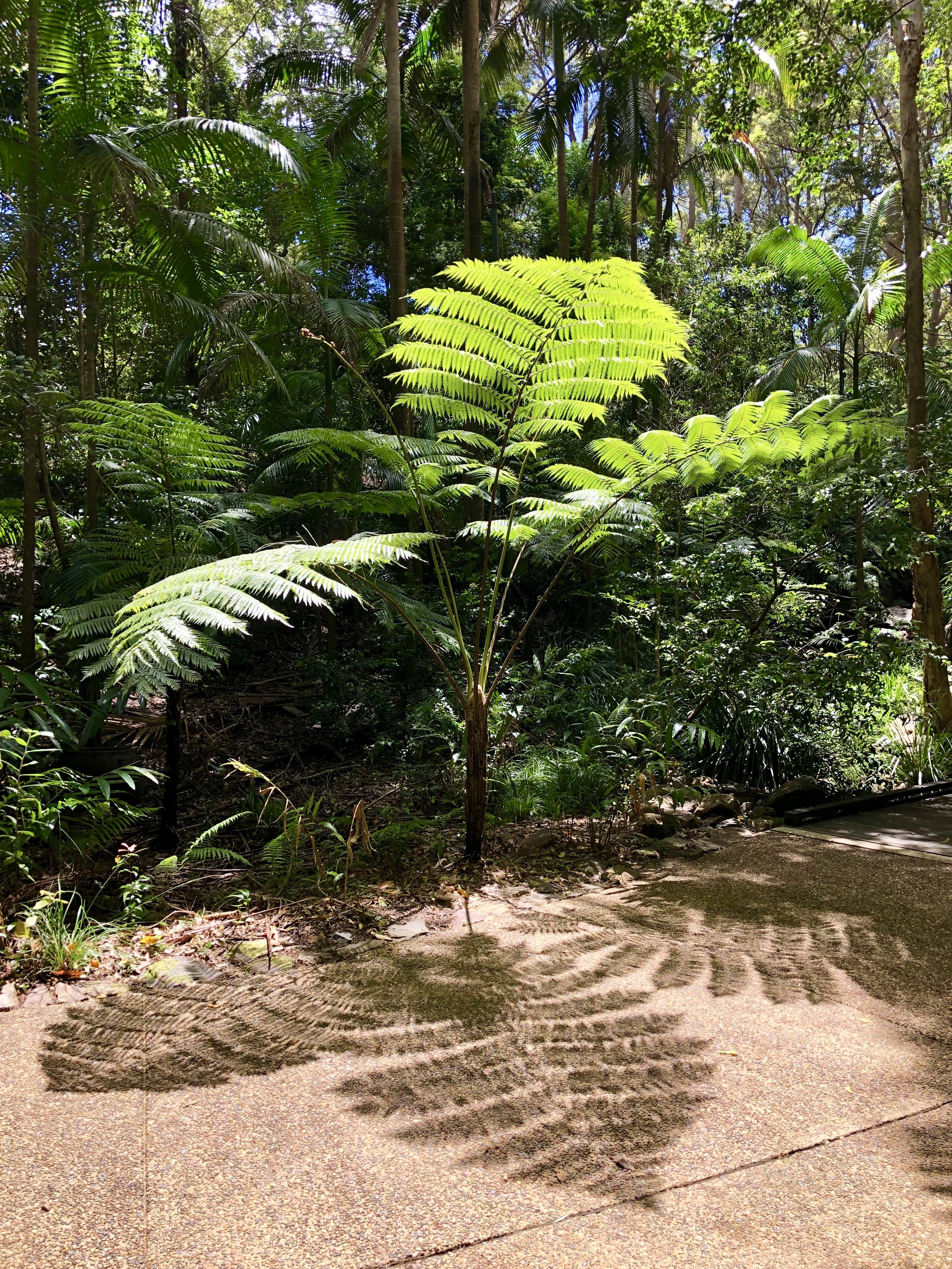 Wir entschieden uns für einen Spaziergang durch den Farngarten, wo viele verschiedene Arten von Farn wachsen. Einige von ihnen werden bis zu 10 m hoch und selbst ich habe diesen Farn noch nie gesehen.
