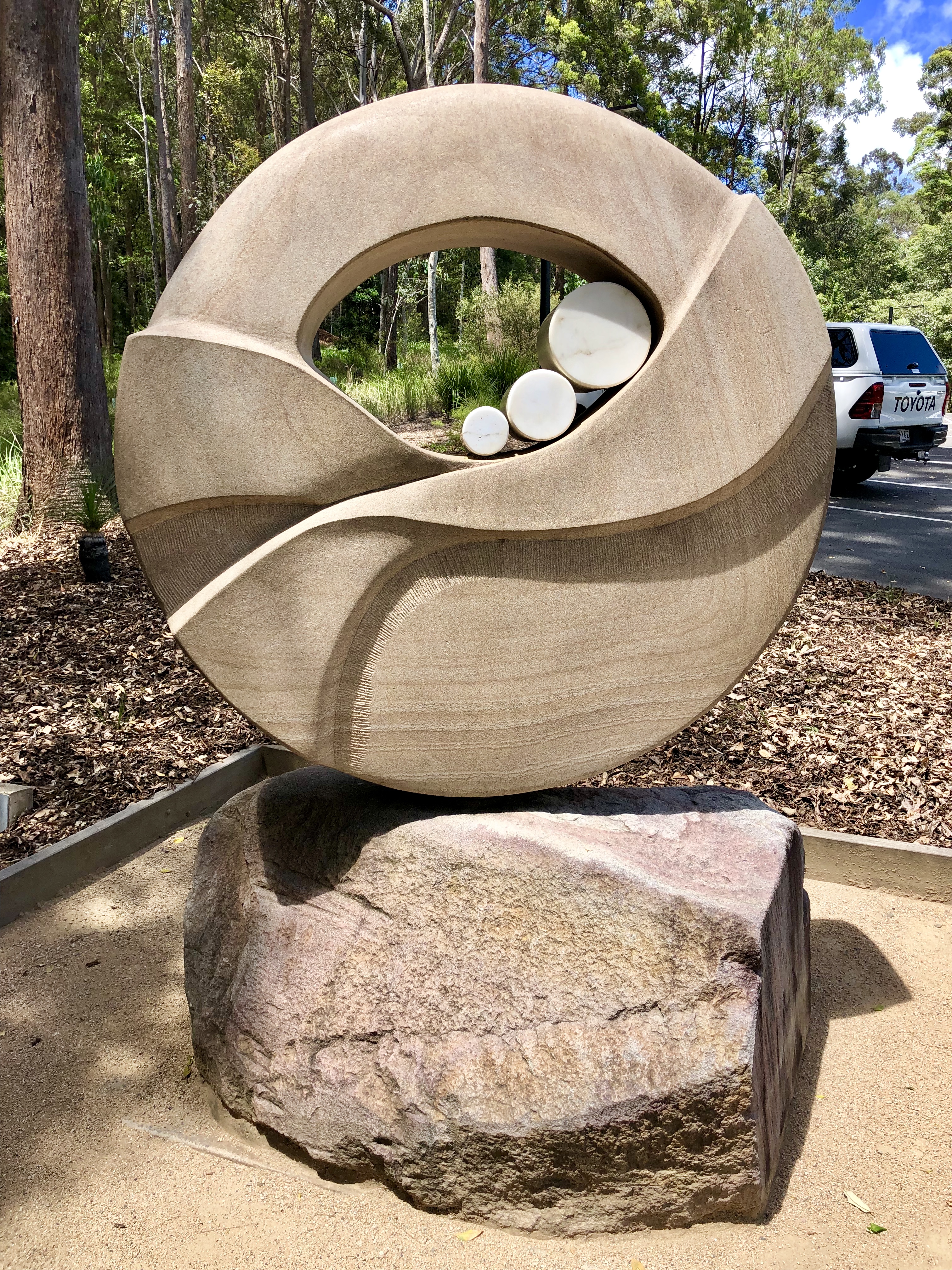 Danach machten wir uns auf den Sculpture Walk, einen Weg, auf dem Künstler ihre Kunstobjekte ausstellen können. Erneut führte uns der Weg durch einen schönen Wald.