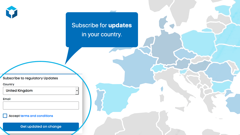 Melden Sie sich für Updates an und bekommen Sie Infos, sobald sich Regulierungen in ihrem Land ändern oder hinzukommen