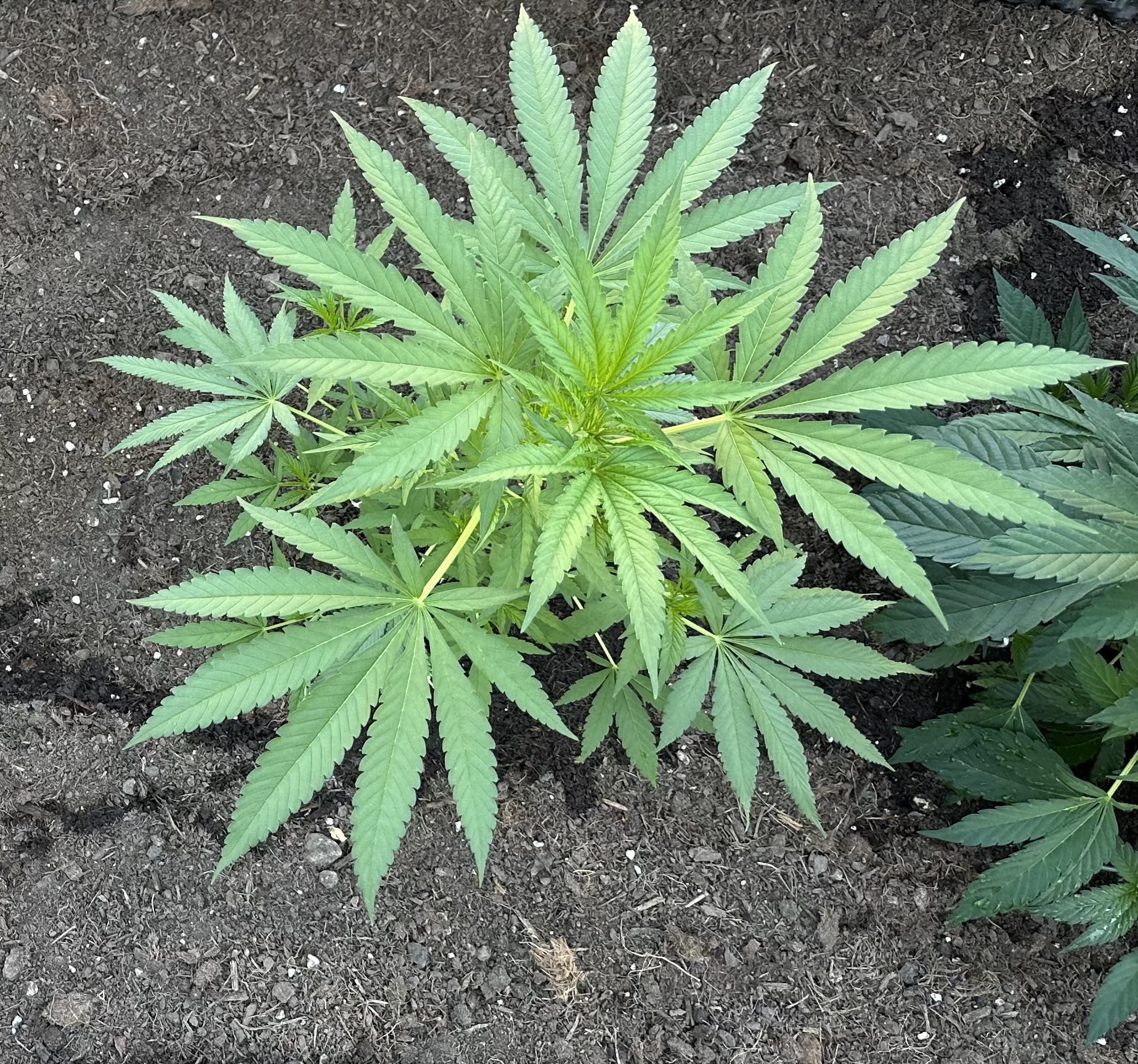 Der Grow ist fertig. Es war ernüchternd, die Growshop- Erde war großer Schitkram. Ich habe eine der Pflanzen draußen im Gewächshaus, in billigste Baumarkterde gesetzt.