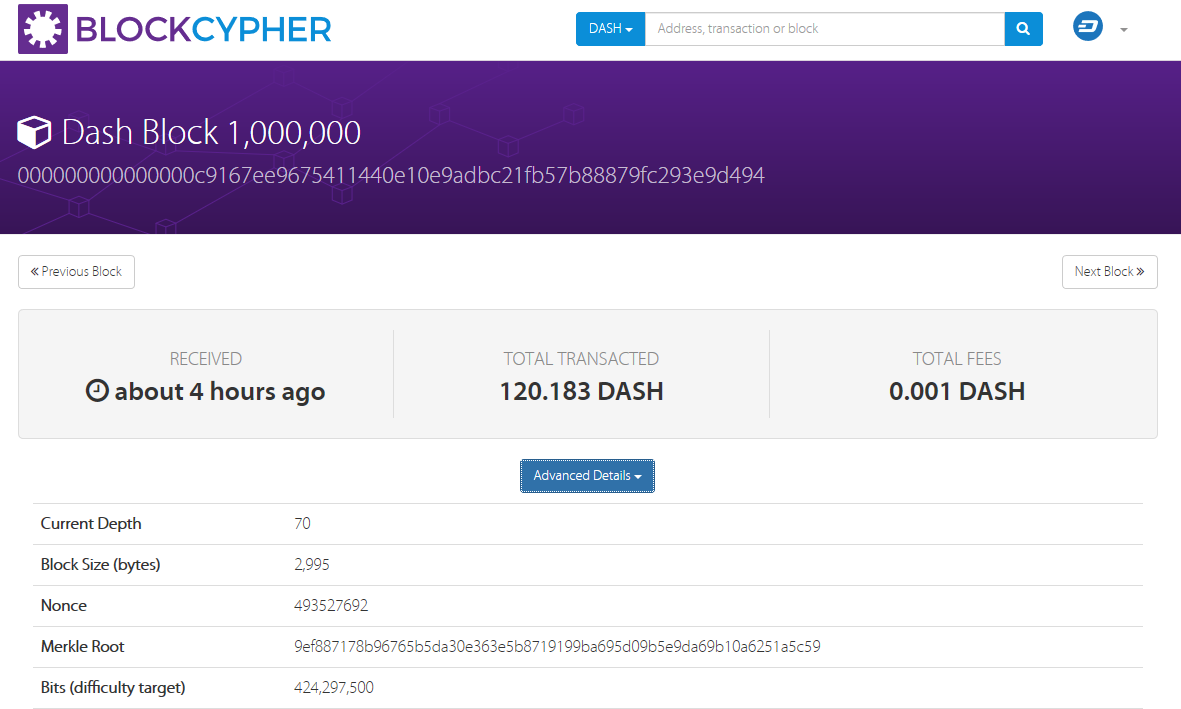Heute wurde der Dash-Blockchain der Block mit der Nr. 1.000.000 angefügt. Dies ist ein historischer Meilenstein über den wir uns ganz besonders freuen!