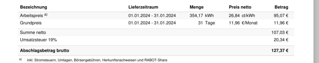 Seit einem Jahr habe ich nun einen flexiblen Stromtarife und RABOT CHARGE verkündete nun folgendes...