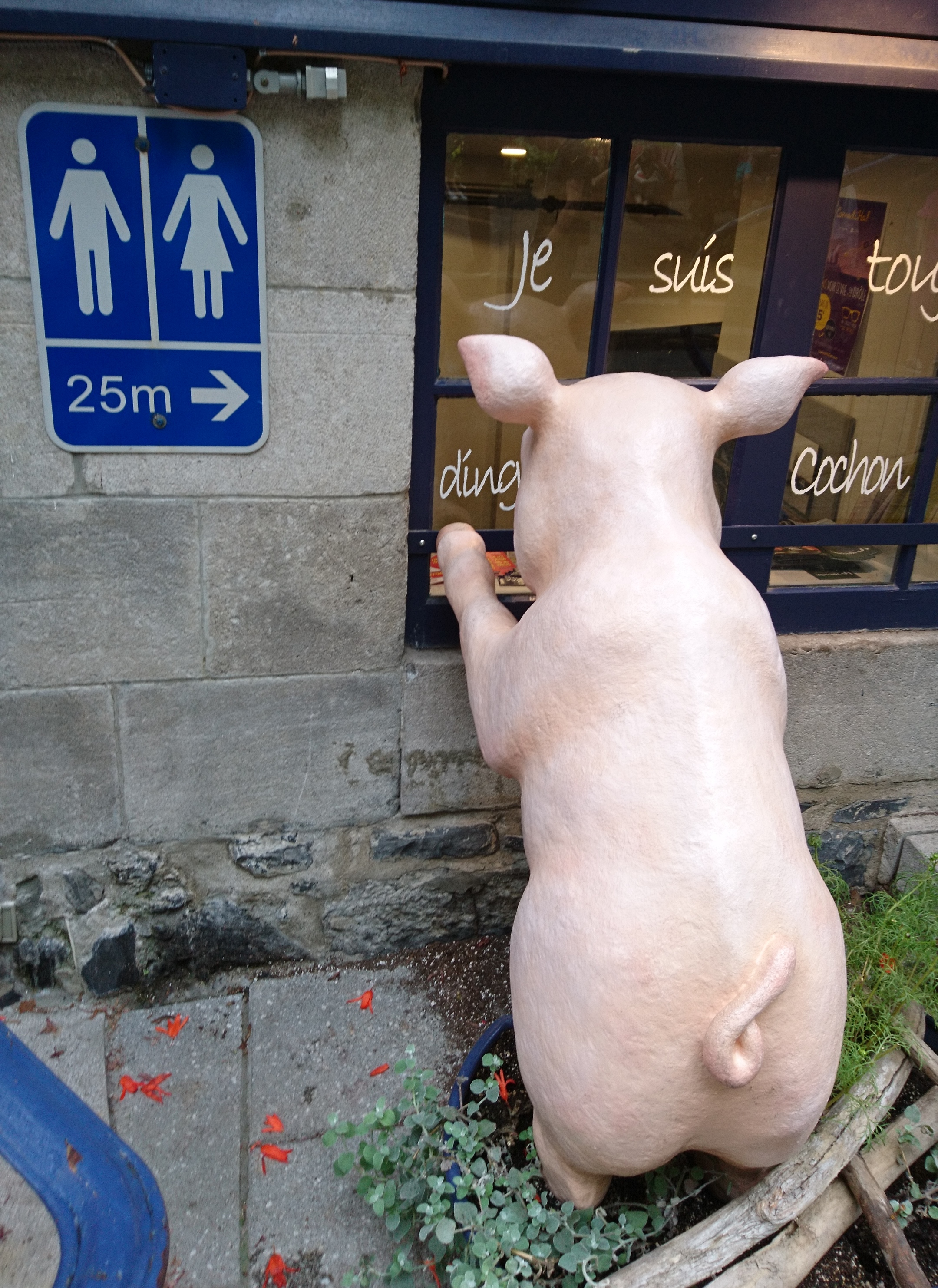 Funny pics #10 - Quebecdreamtravels (54)in #deutsch • 8 years ago Bei unserem Besuch in Quebec City erblickten wir dieses künstliche Schwein vor einem Restaurantfenster. #funny #travel #photography #canada