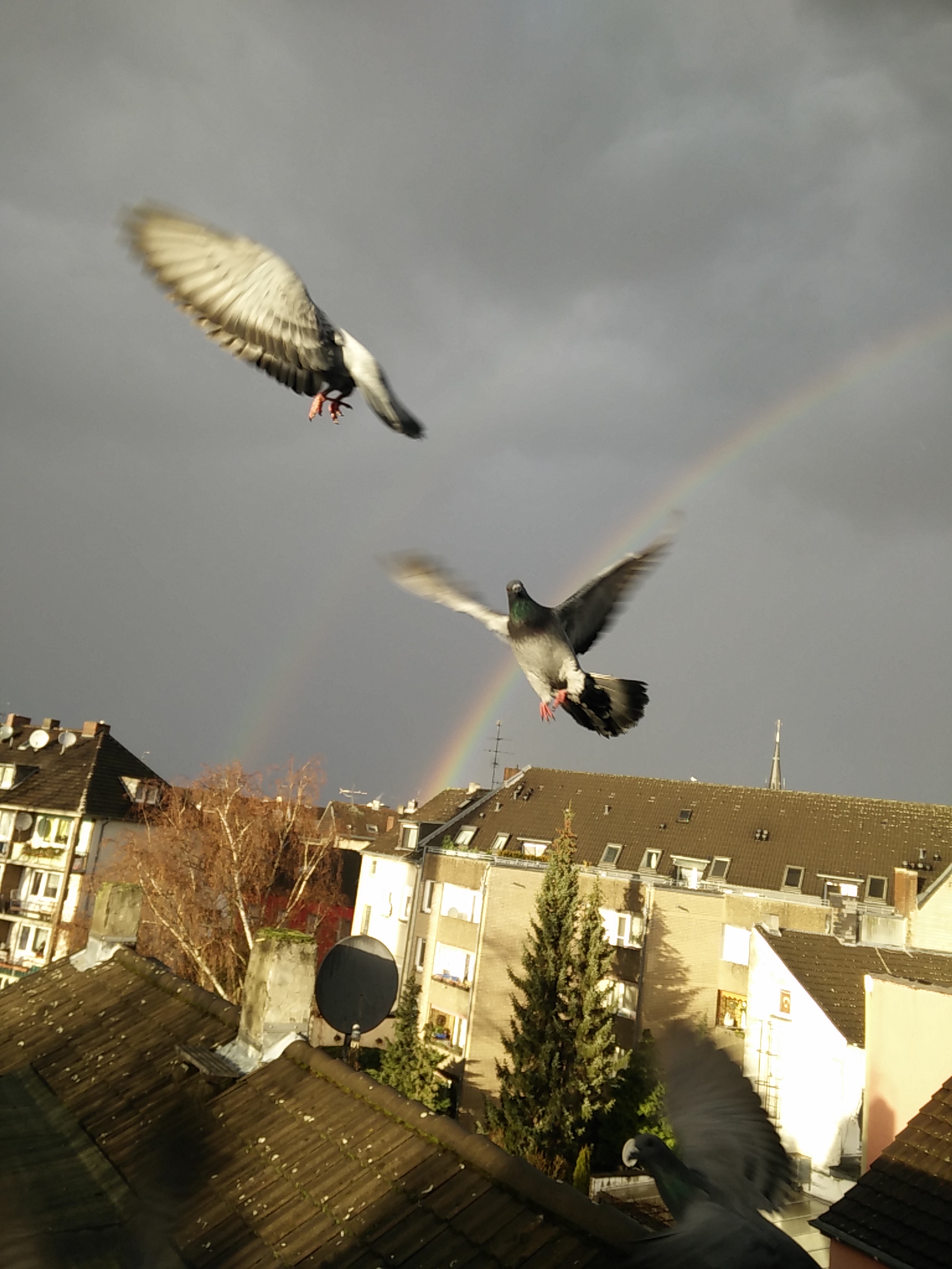 A double rainbow and some free flying pigeons!