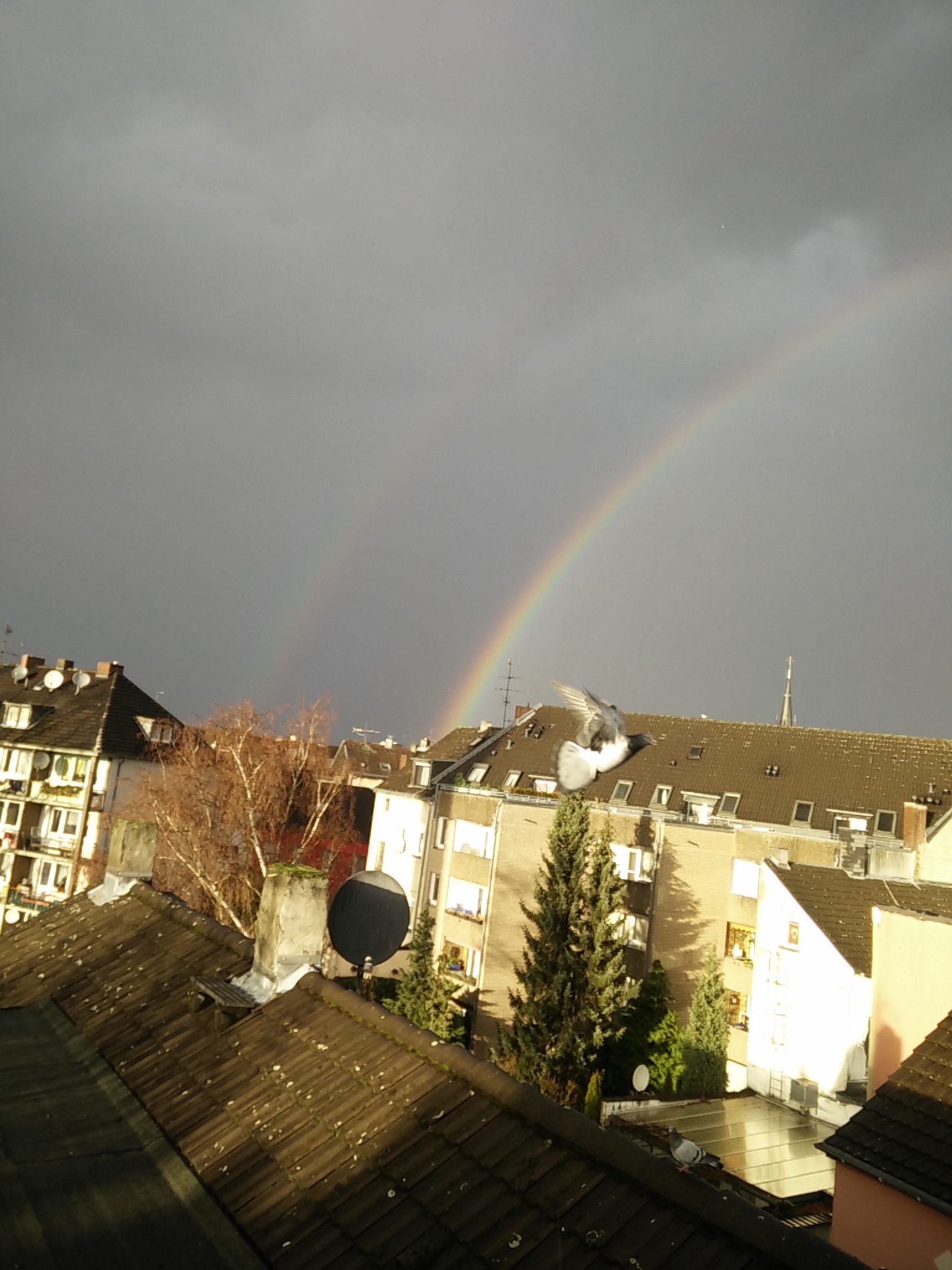 Ein doppelter Regenbogen und einige frei fliegende Tauben!