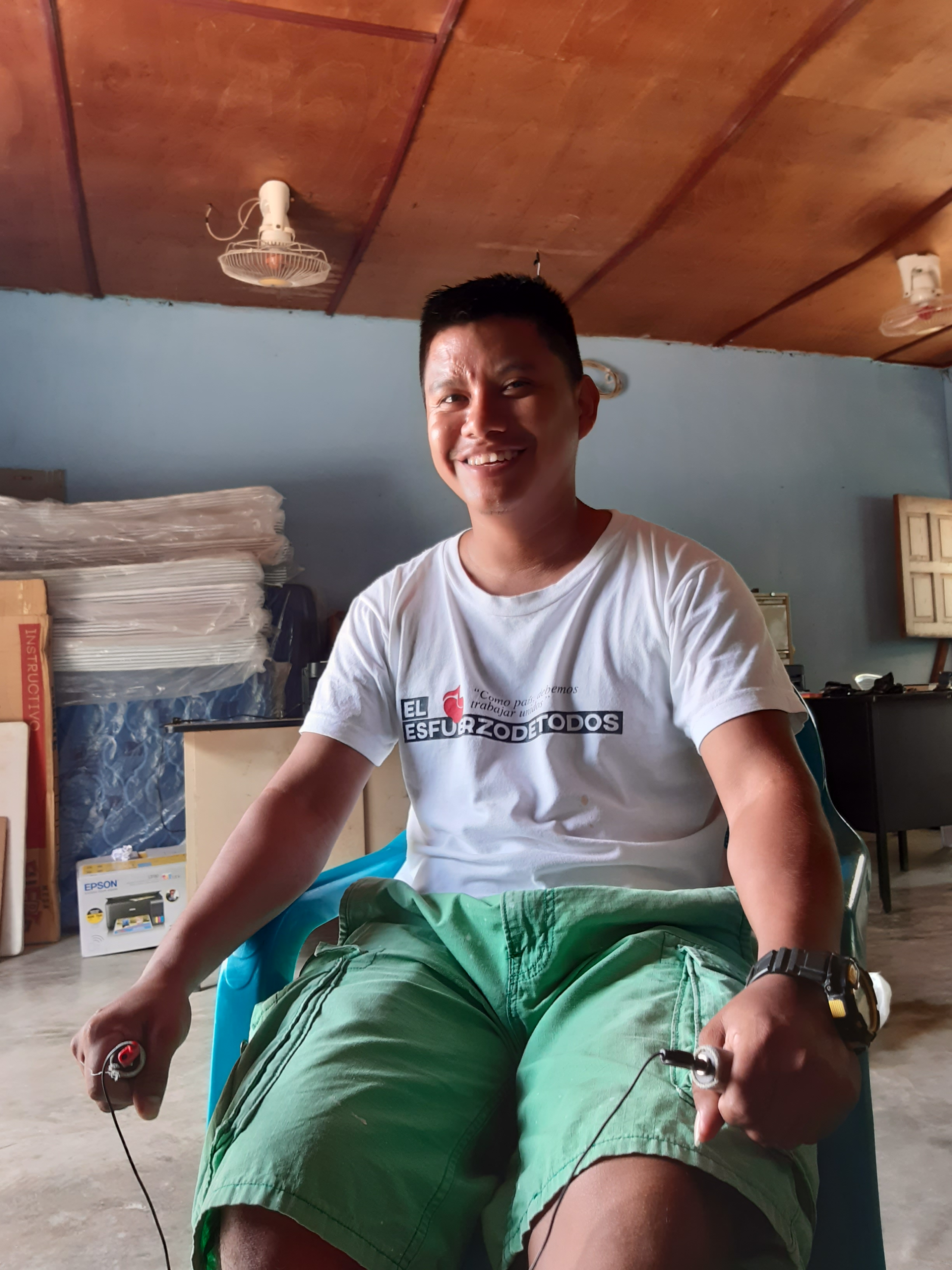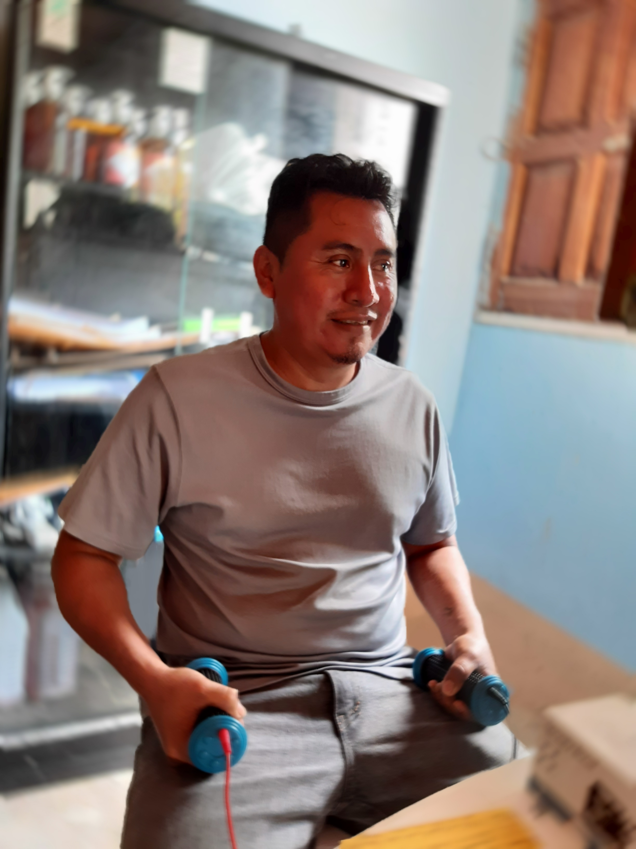 Zurück in Santa Helena machten wir uns zur Ausnahme einmal zu Fuss auf den Rückweg. Wir erkannten alte Freunde in einer Apotheke und gingen entsprechend vorbei, um kurz Hallo zu sagen. Der Junge, nach 6 Monaten geboren, hat ein Energiehaushalt ohnegleichen, während sein Bruder lieber allerlei Fragen stellt. So wollte er, dass ich einen Song singe, während ich die Maschine installierte für seinen Grossvater. Sein Grossvater leidet ebenfalls unter Diabetes und sein Fuss ist so stark beschädigt, dass auch nach 150'000 Quetzales und mehreren Operationen das Problem noch immer nicht behoben ist. Während ich dem 1. Sohn seine Englisch Aufgaben löse, begutachten wir die Diagnose des Grossvaters mit der Maschine: Diabetes und eine Unmenge an Parasiten. Wir gaben ihm Silber und eine Behandlung mit dem RSG.