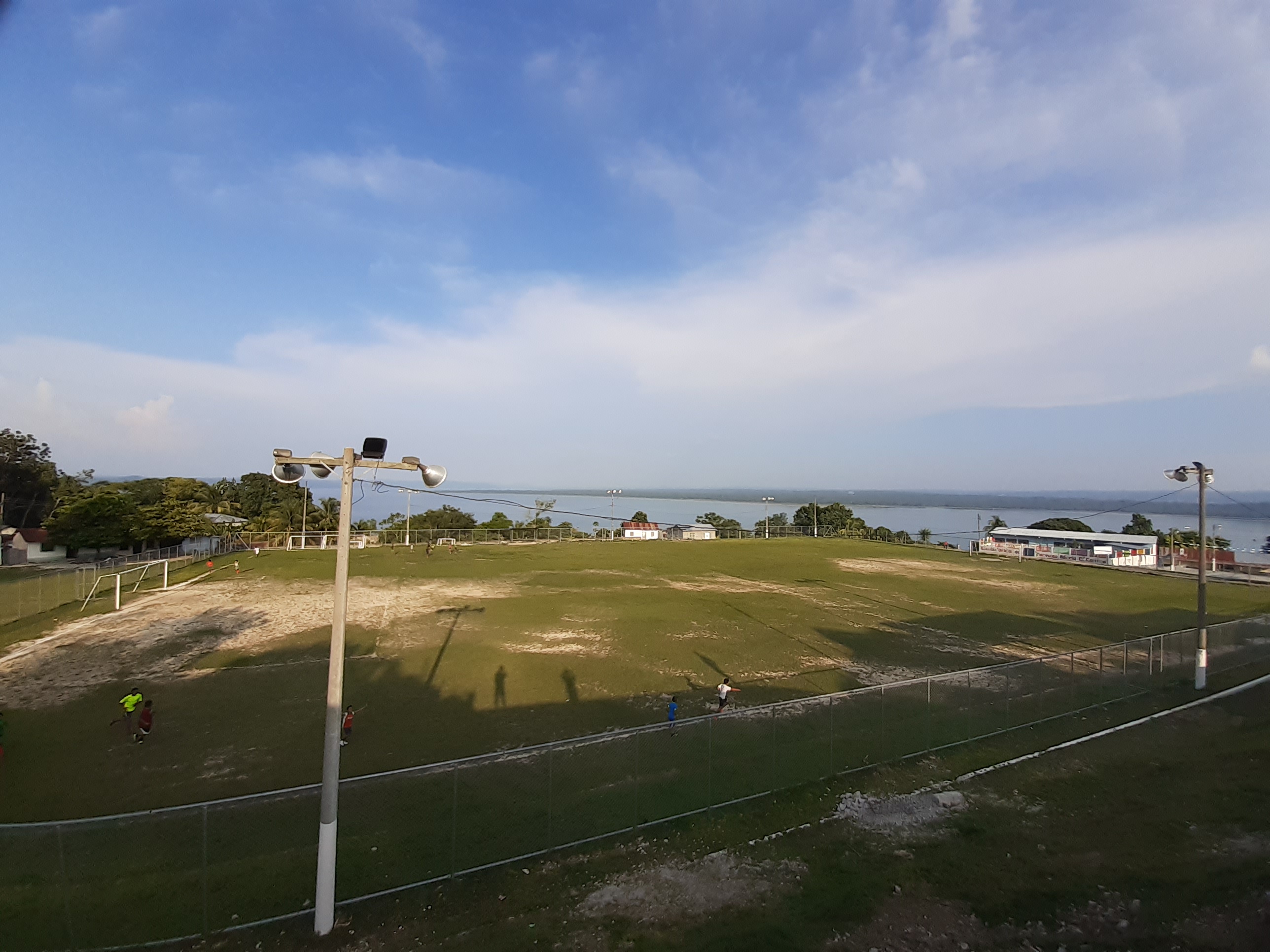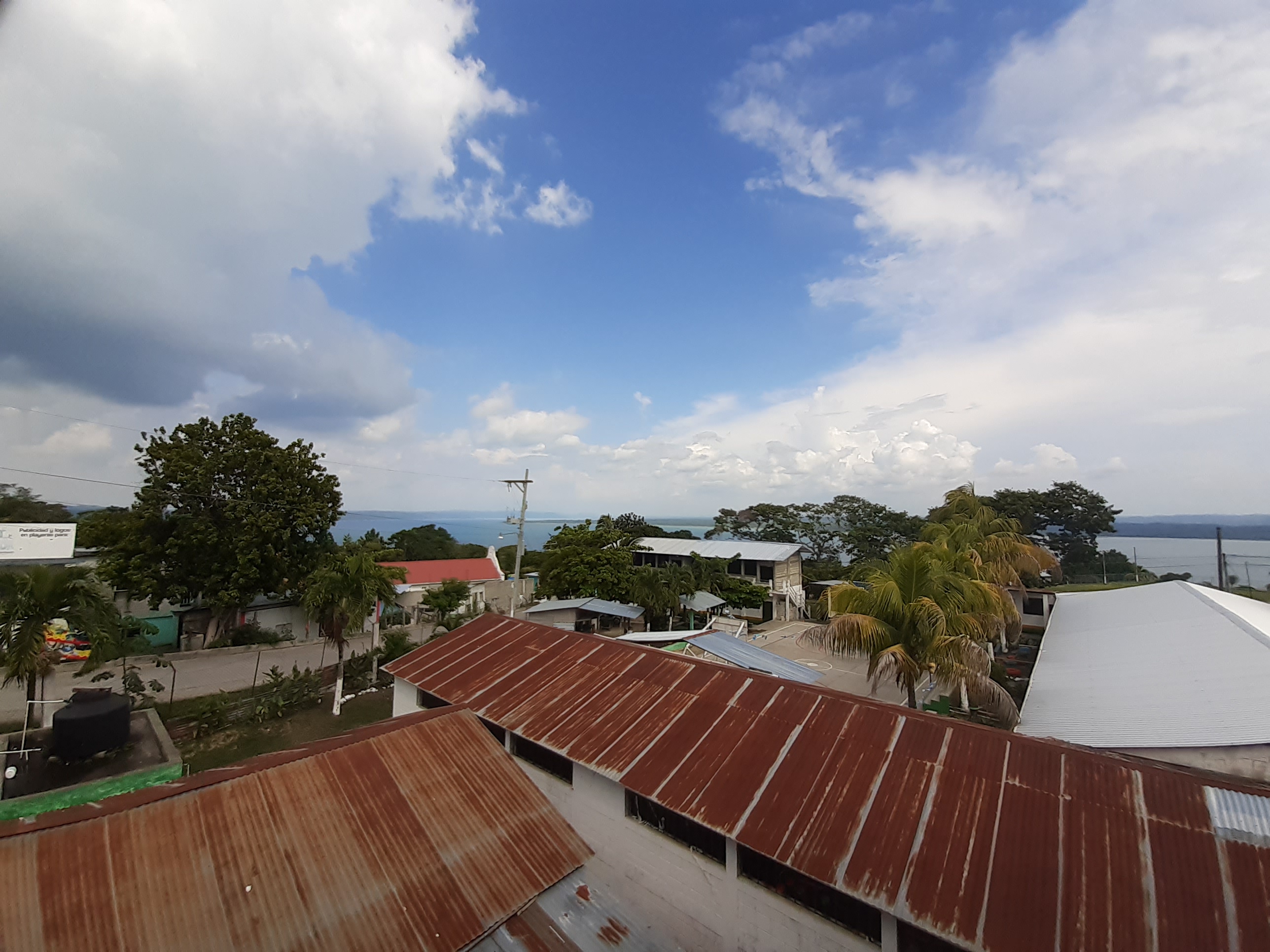 Der Ort - genannt San Jose - ist ein idyllisches Dorf an einem Hang mit Blick über den gesamten See. Während witzig kleine aber schön dekorierte Häuser sich um die steilen Strassen den Hang hinauf anreihen, geniesst man schnell eine wunderschöne Aussicht, von Flores bis in die hügelige Landschaft Richtung Yaxha. Oder für diejenigen, welche die Gegend nicht kennen: ein See, umgeben von Wald, mit Hügeln im Hintergrund mit noch mehr Wald. Also Jungel. Man sieht von hier aus sehr eindrücklich, wie diese Region abgesehen von den kleinen städten um den See und um Flores herum, noch sehr unberührt und wild ist.