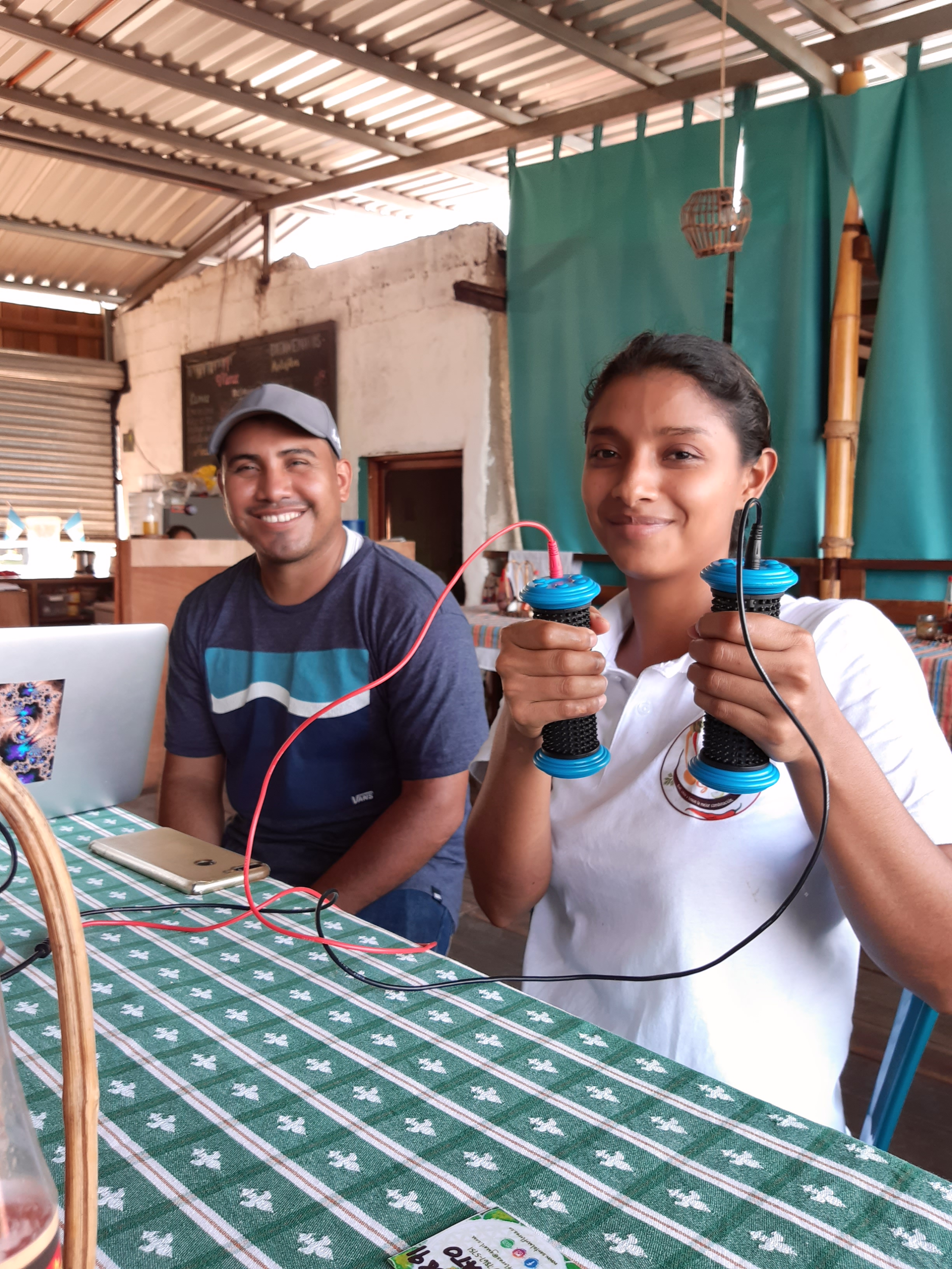 Der Besitzer des Lokals war per Zufall auch da und schien interessiert an unserer Arbeit. Und so erklärten wir ihm die Maschinen. Seine Frau könne nicht schwanger werden und so beschlossen wir, ihn und seine Frau nach dem Mahl zu diagnostizieren. Der Mann - Carlos - war in gutem Zustand, nur fehlt im ein wenig Magnesium. Laut Studien leiden 80 % der Menschen unter Magnesiummangel, von dem her scheint dies normal. Seine Frau hingegen zeigte einen akkuten Mangel. Sie bestätigte, dass sie jede Nacht starke Krämpfe hat und die Menstruation ihr schwer fällt. Dies kann natürlich auch andere Gründe haben, doch die spooky2 Maschine zeigte bloss Magnesium an, sowohl einige Parasiten, wiederum von Hunden.