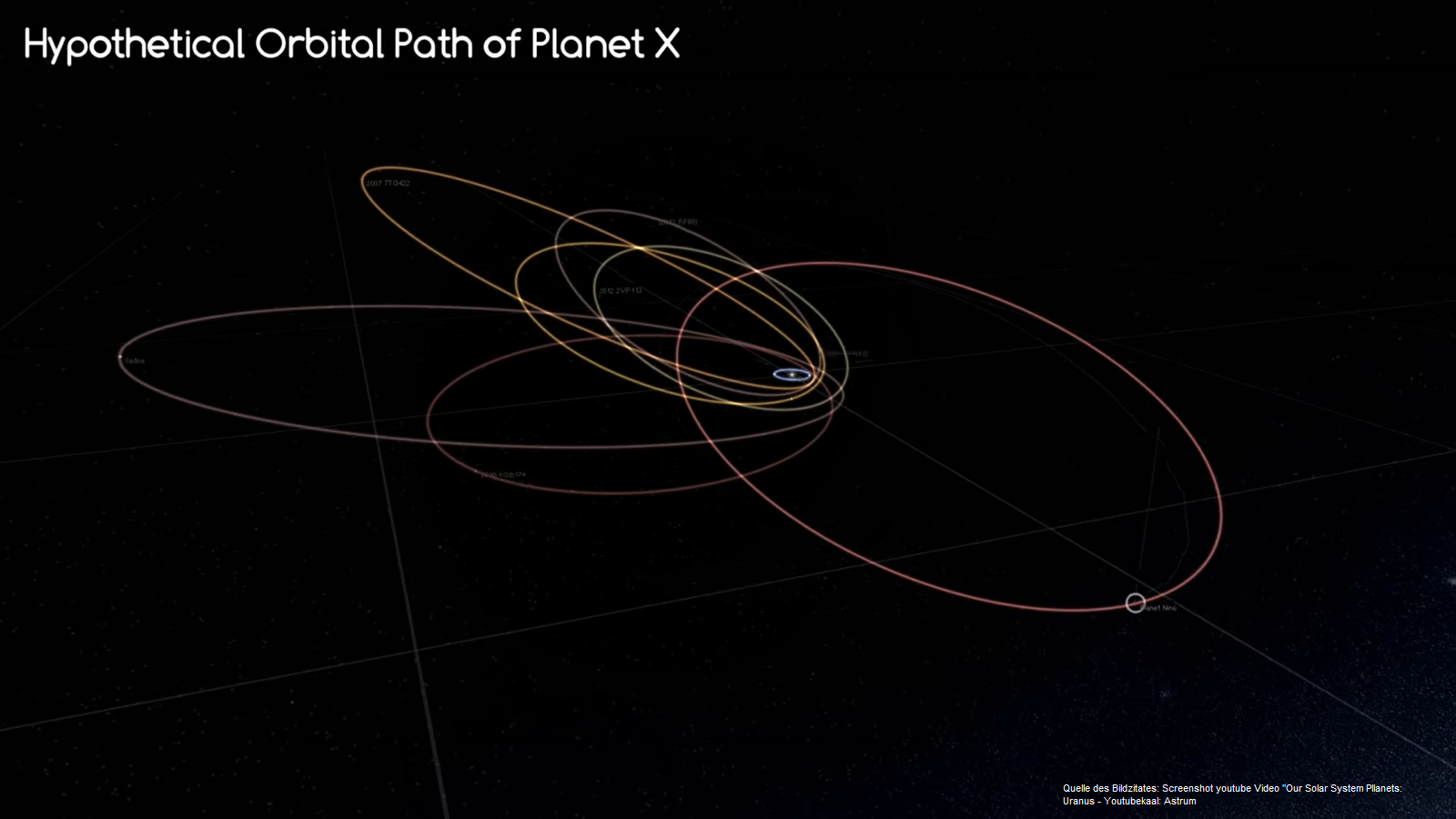 Mathematisch betrachtet muss man seit Januar 2015 davon ausgehen, dass es den neunten Planeten im Sonnensystem gibt. Ihn zu finden dürfte hingegen denkbar schwer werden, weil seine Umlaufbahn zum einen hoch exzentrisch verlaufen dürfte, er zum anderen in unvorstellbar weiter Entfernung von der Sonne sich gegenwärtig bewegen dürfte und zudem wegen seiner Größe auf Grund der Entfernung nur sehr schwer aufzufinden sein wird.