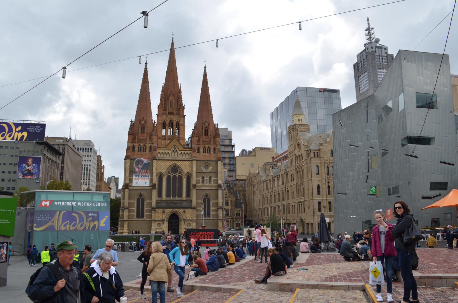 nach Brighton Beach geht es nun in die Metropole Melbourne. Hier haben wir uns am Ende unserer Reise mehrere Tage aufgehalten. Fast täglich haben wir den "federation square" aufgesucht – einem großen kulturellen Veranstaltungsort. Hier treffen viele Leute und Touristen auf ein breites Angebot aus Kunst, Kultur und öffentlichen Veranstaltungen.