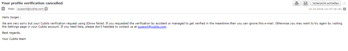 Wer nachfolgende Mail in seinem Postfach findet denkt natürlich sofort an einen Fake.
