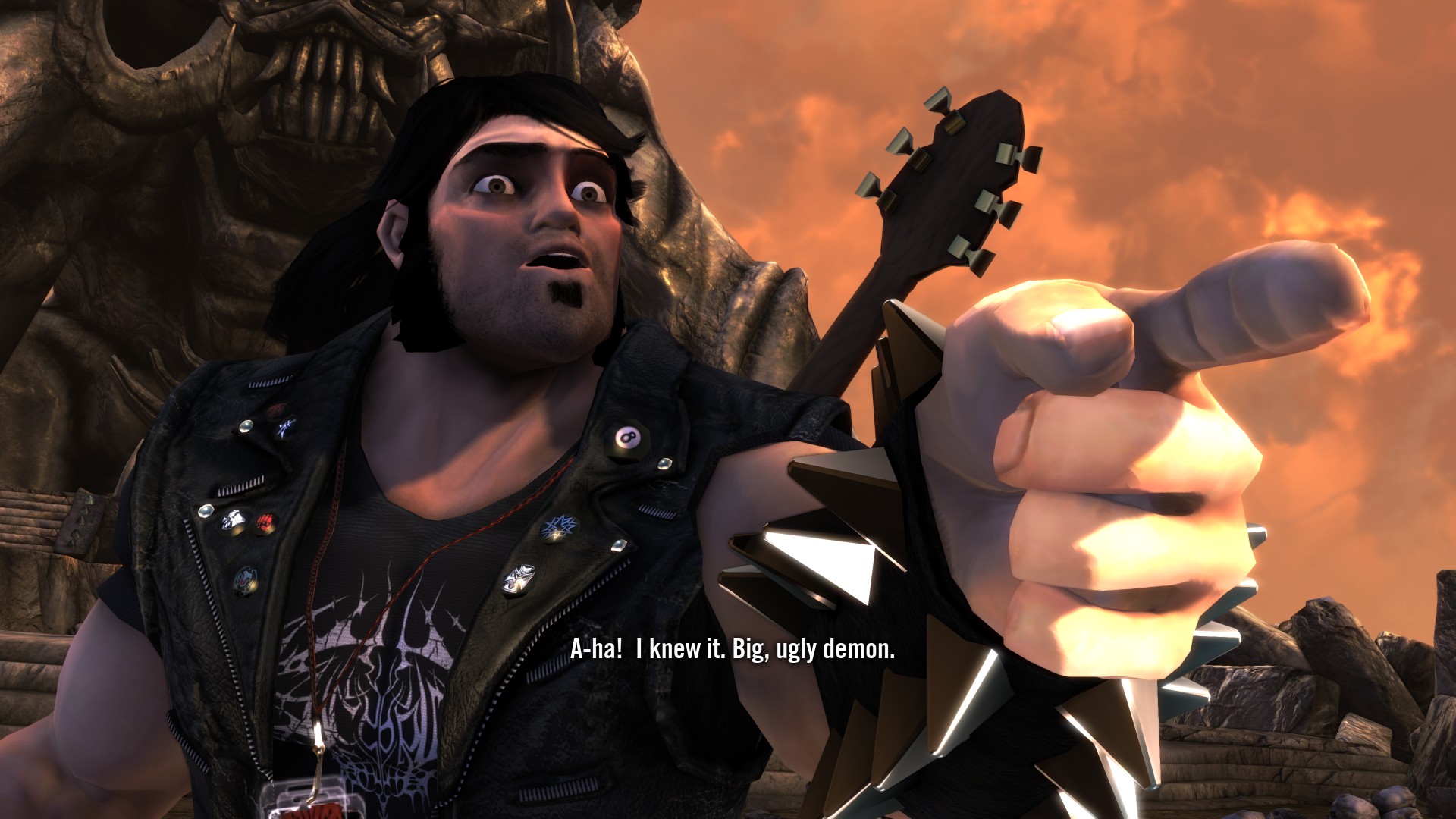 Die Story des Spiels ist nicht schlecht aber auch nicht die beste. Das gesamte Spiel hat keine deutsche Audiosprache da es nicht ins deutsche Synchronisiert. Menüs und untertitel (sofern man diese einschaltet) lassen sich auf Deutsch stellen. Einige Charaktere die vorkommen könnte man mit Größen aus dem Metal bereich verwechseln natürlich gibt es passend auch einige bekannte Synchronsprecher aus diesem bereich.