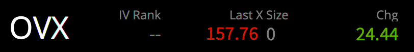 Da aber momentan Weltungergangsstimmung an den Ölmärkten herrscht ist die erwartete Volatilität (Implied Volatility) auch entsprechend hoch, nämlich 157.76%.