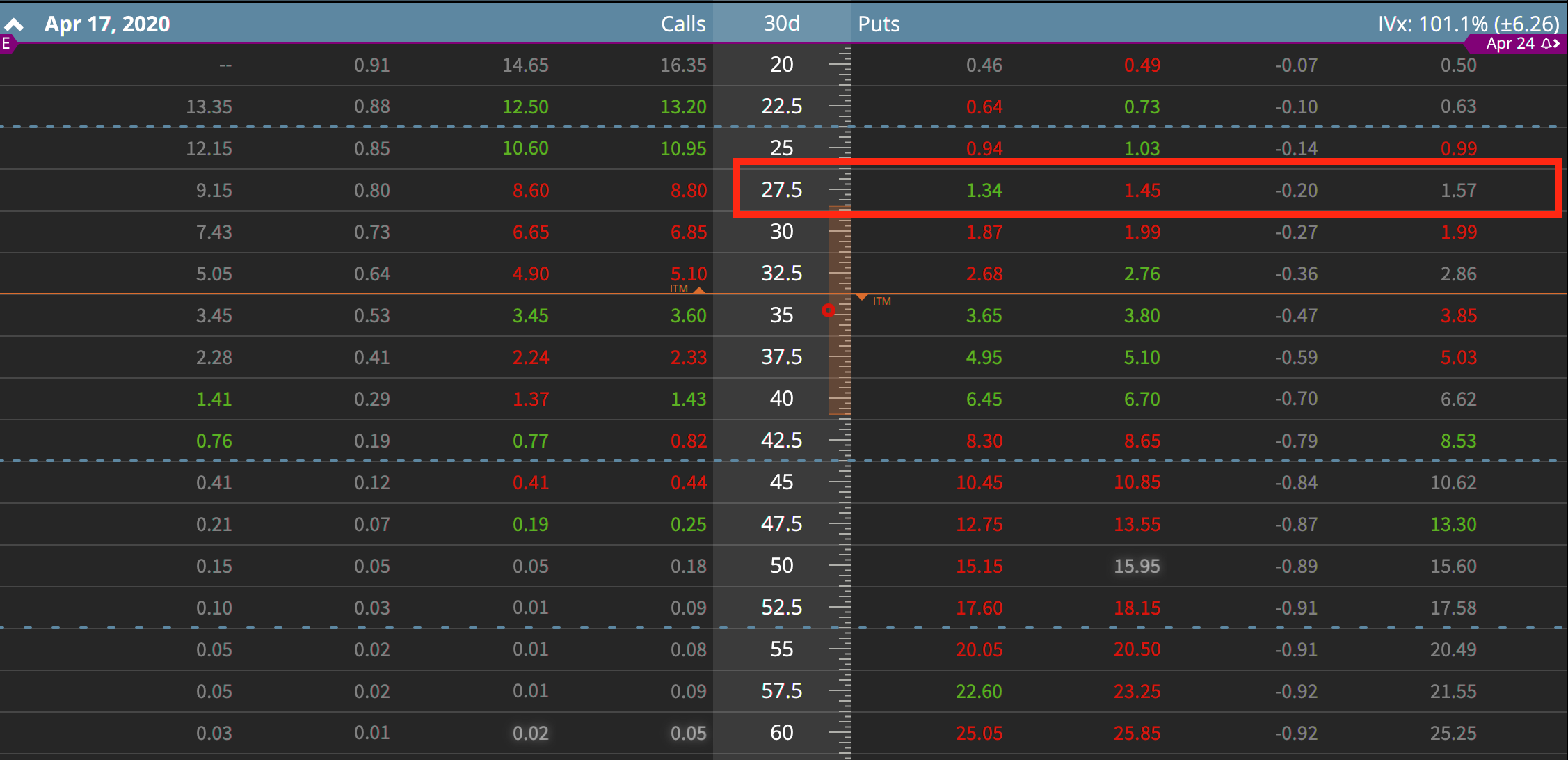 Was ihr nachfolgend seht ist eine Option Chain des Verfallsmonats April.