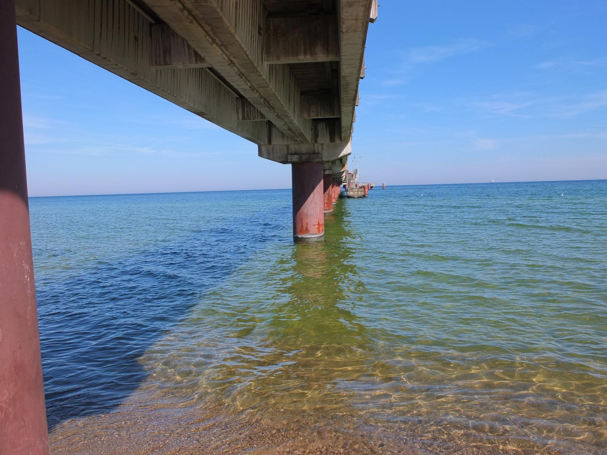 Rügen-Erinnerungen ohne mindestens eine Seebrücke wären irgendwie unvollständig. Dies hier ist die Göhrener Seebrücke, ausnahmsweise einmal von unten aufgenommen.