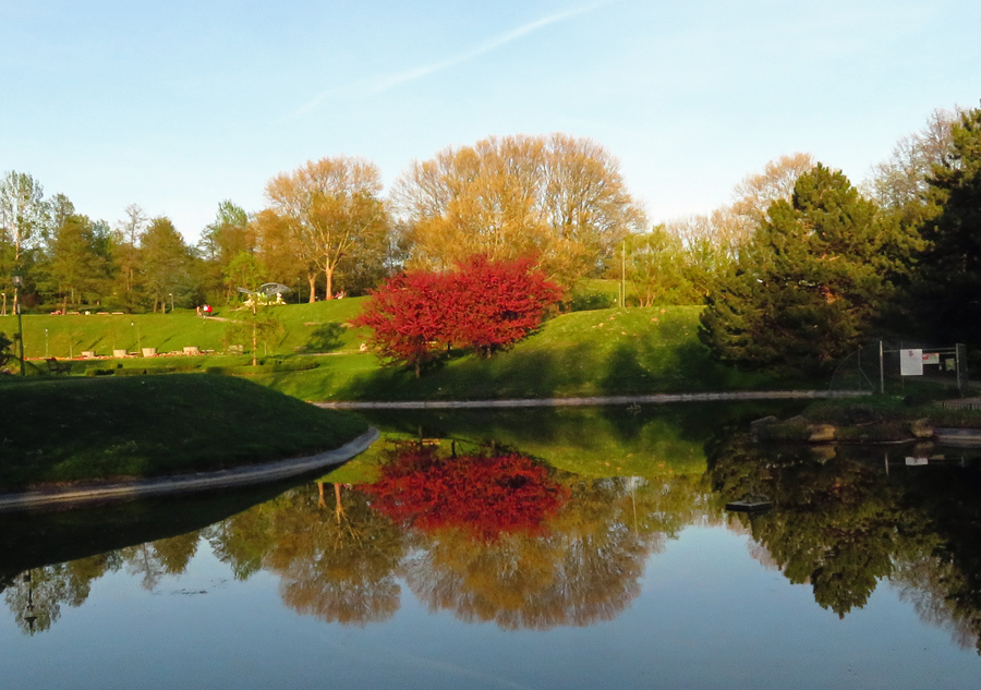 Die folgenden Prachtxemplare habe ich bereits einmal vorgestellt. Sie vergnügen sich in einem Teich im Kurpark Oberlaa, einem beliebten Naherholungsgebiet im Osten der Stadt.