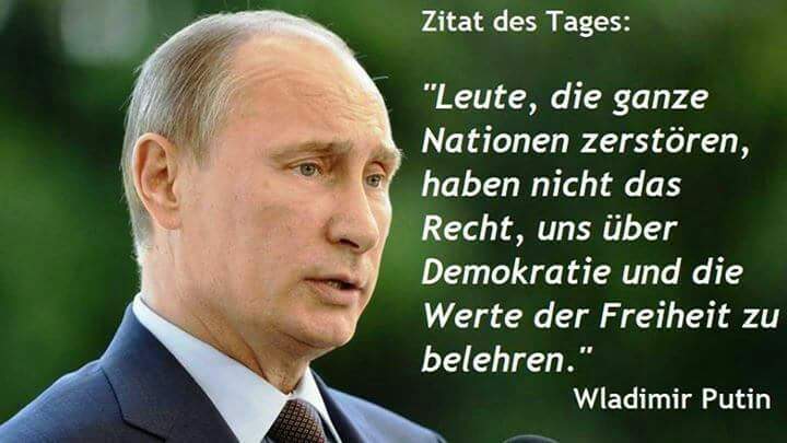 ich hätte es auch so machen können wie einige andere - und werde das wohl auch in Zukunft - daß ich vom Text einen Screenshot erstelle und den hier als Image poste. Dann erspart man sich dieses ewige - wo ist das her ... eine Rede Putins hat wohl nur einen Ursprung - bei Putin. Und der hat sich meines Wissens noch nicht beschwert darüber, daß seine Reden verbreitet werden. Wem das Spaß macht, der kann ja nachforschen, wo das irgend wann einmal zum ersten Mal aufgetaucht ist.Mir macht das keinen Spaß und ich finde es auch unerheblich .. wo ich es herhabe? aus meinem Putin-Ordner, ich betreibe 2 Putin-Fanclubs auf Facebook mit mehr als 10.000 Mitgliedern, da sammelt sich Material an. Was man bei Putin noch kennzeichnen soll, ist mir ein Rätsel, diese ganze Kennzeichnerei nervt, das ist die Abart des Hollywood-Copyright-Syndroms, wird Zeit, daß es bald neue Netzwerke gibt wo man mit so etwas nicht mehr geplagt wird