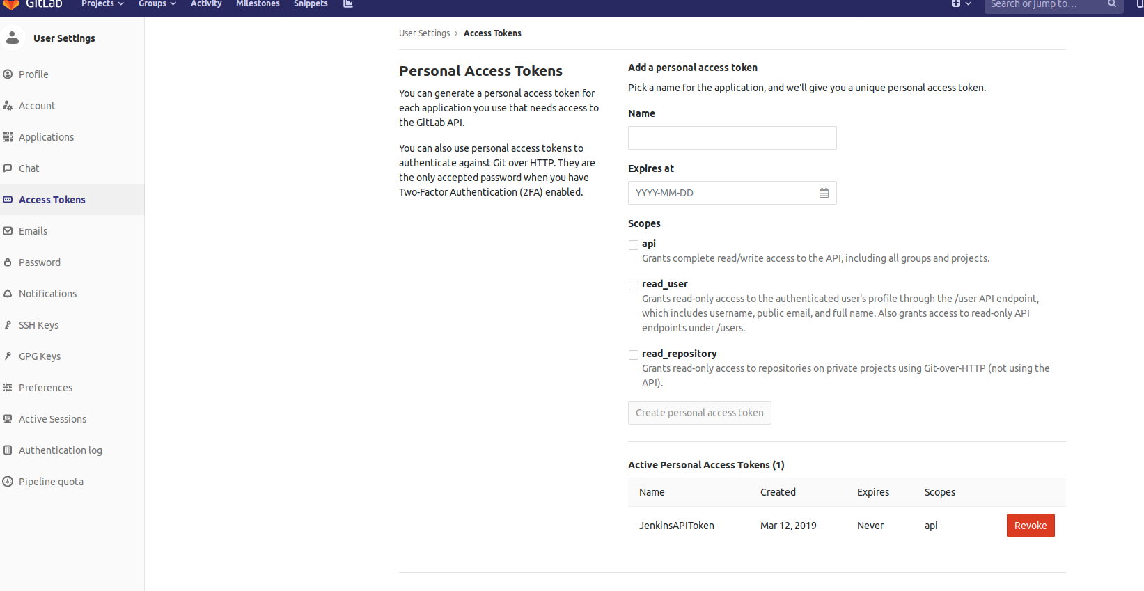 i) Create a developer account in GitLab and generate access token under user settings.