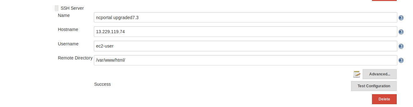For this step SSH servers should be set up in Jenkins configuration