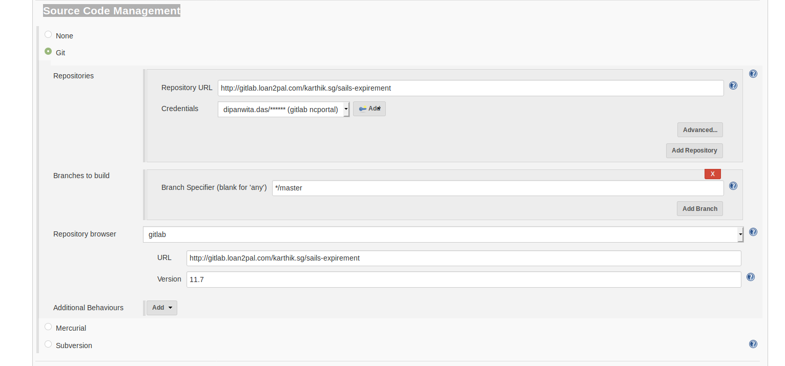 Mention Repository browser, select gitlab and insert URL and version.