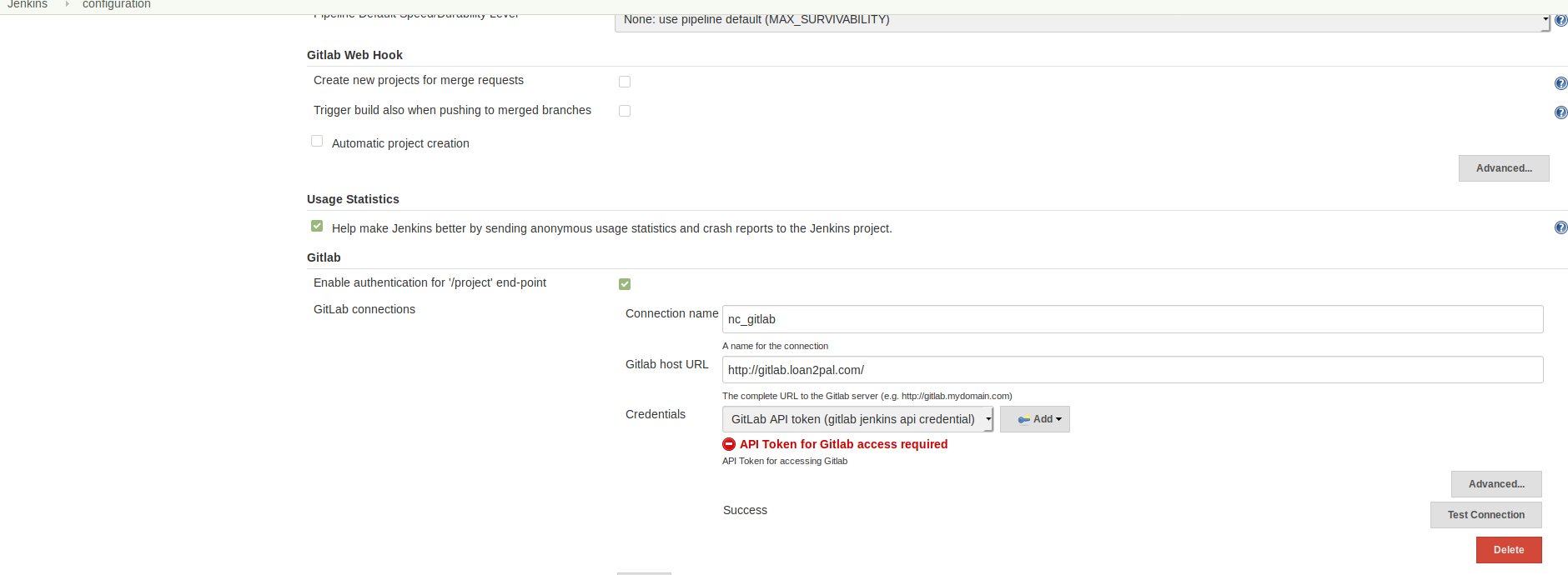 iii) Using the access token gitlab connection needs to be set up.