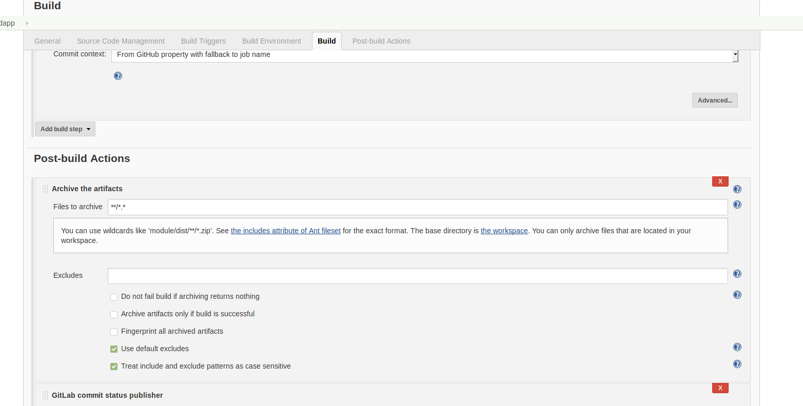 Set up certains post build actions such as archiving code artifacts. Files to be included can be set up here.