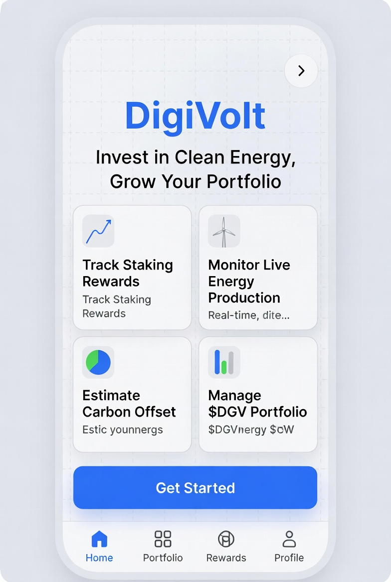 The DigiVolt mobile app plays a crucial role in making renewable energy investing simple and engaging. Available for both Android and iOS, the app acts as a control center where users can track their staking rewards, monitor live energy production from partner plants, estimate their carbon offset contributions, and manage their $DGV token portfolio. The interface is designed for beginners and experts alike, giving real-time insights without overwhelming users. The upcoming feature of carbon credit tokenization will allow users to acquire verified carbon offset tokens, expanding their earning potential while supporting environmental sustainability.