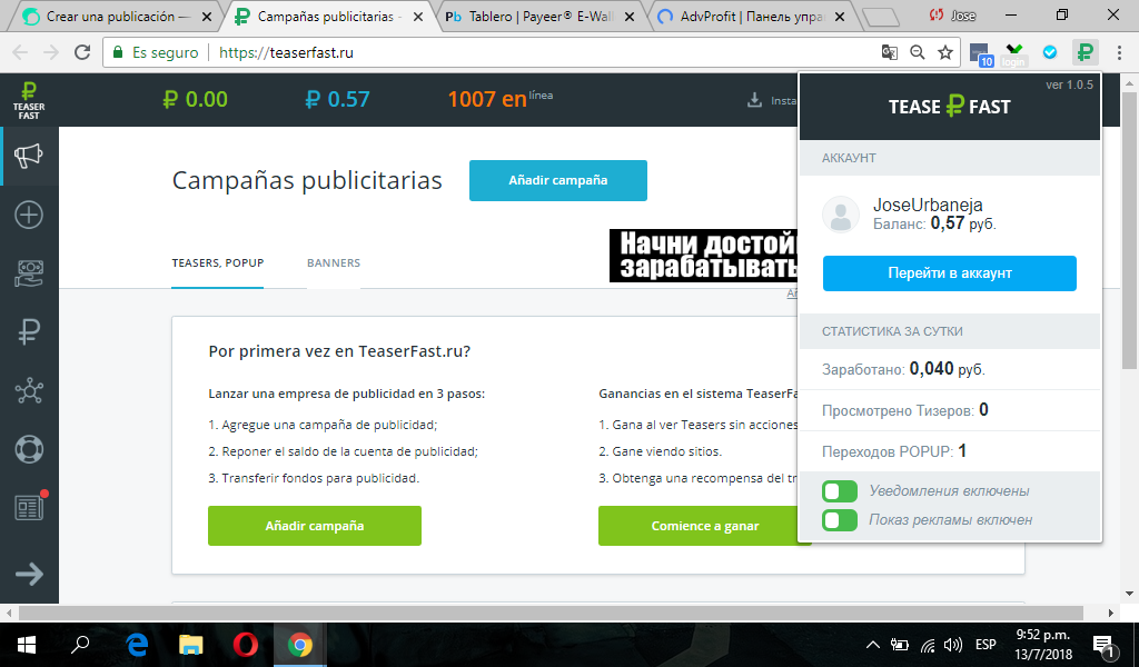 la primera lo que hace es suplantar las publicidades de las paginas y así tu obtienes ingresos en rublos nos paga a partir de 25 rublos