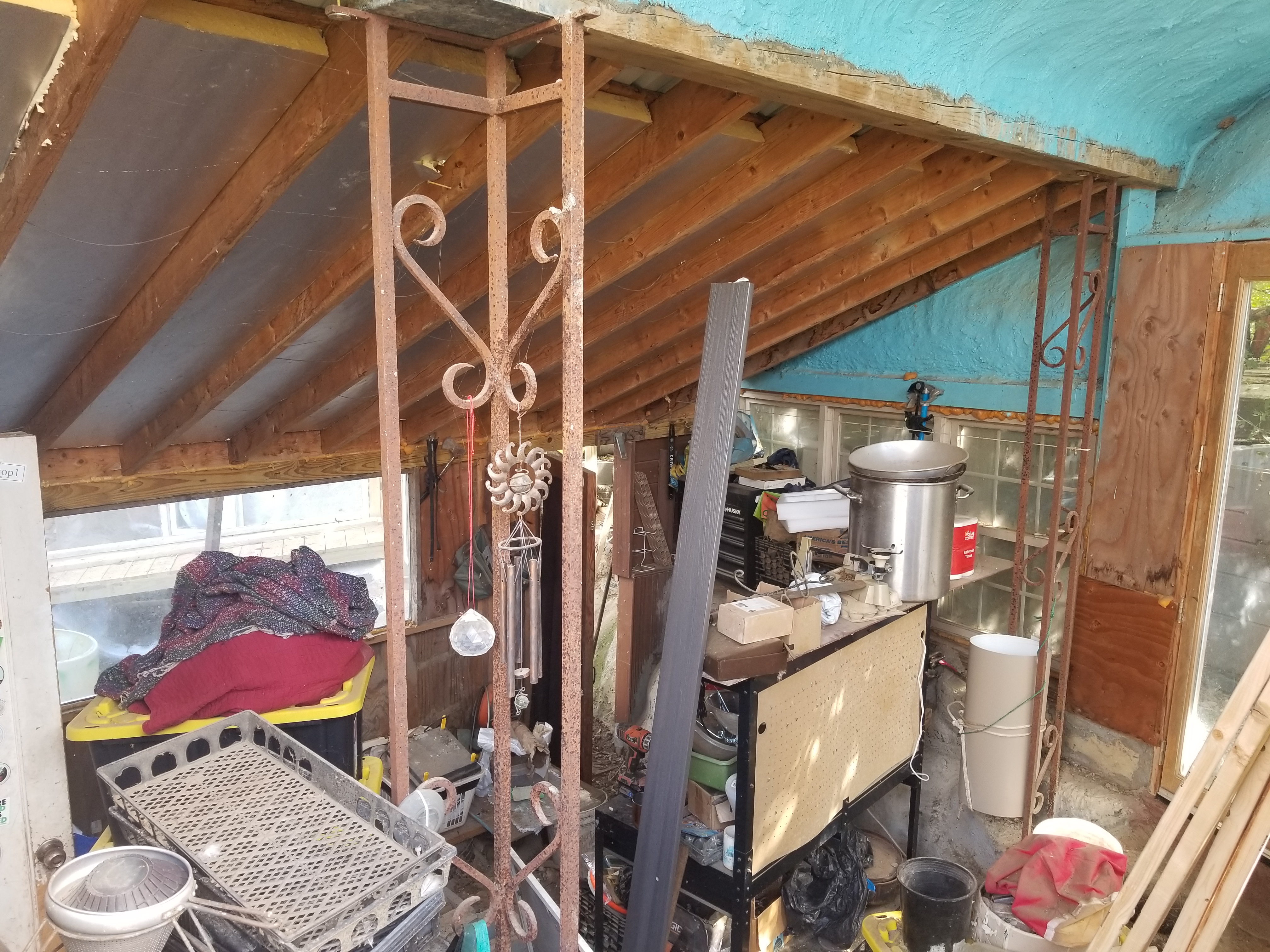 The framing is now visible as well, which separates the kitchen from the outhouse and greenhouse.