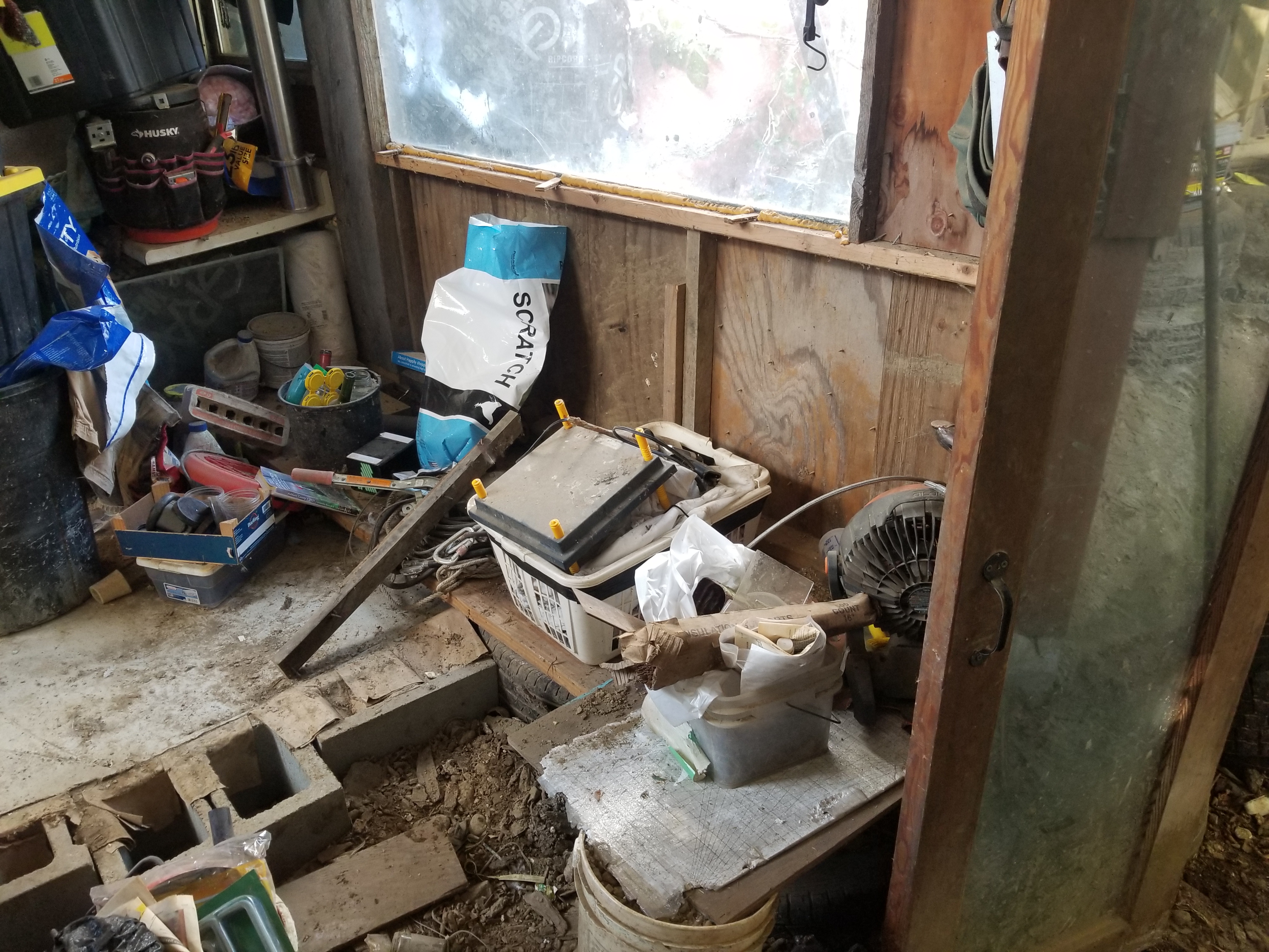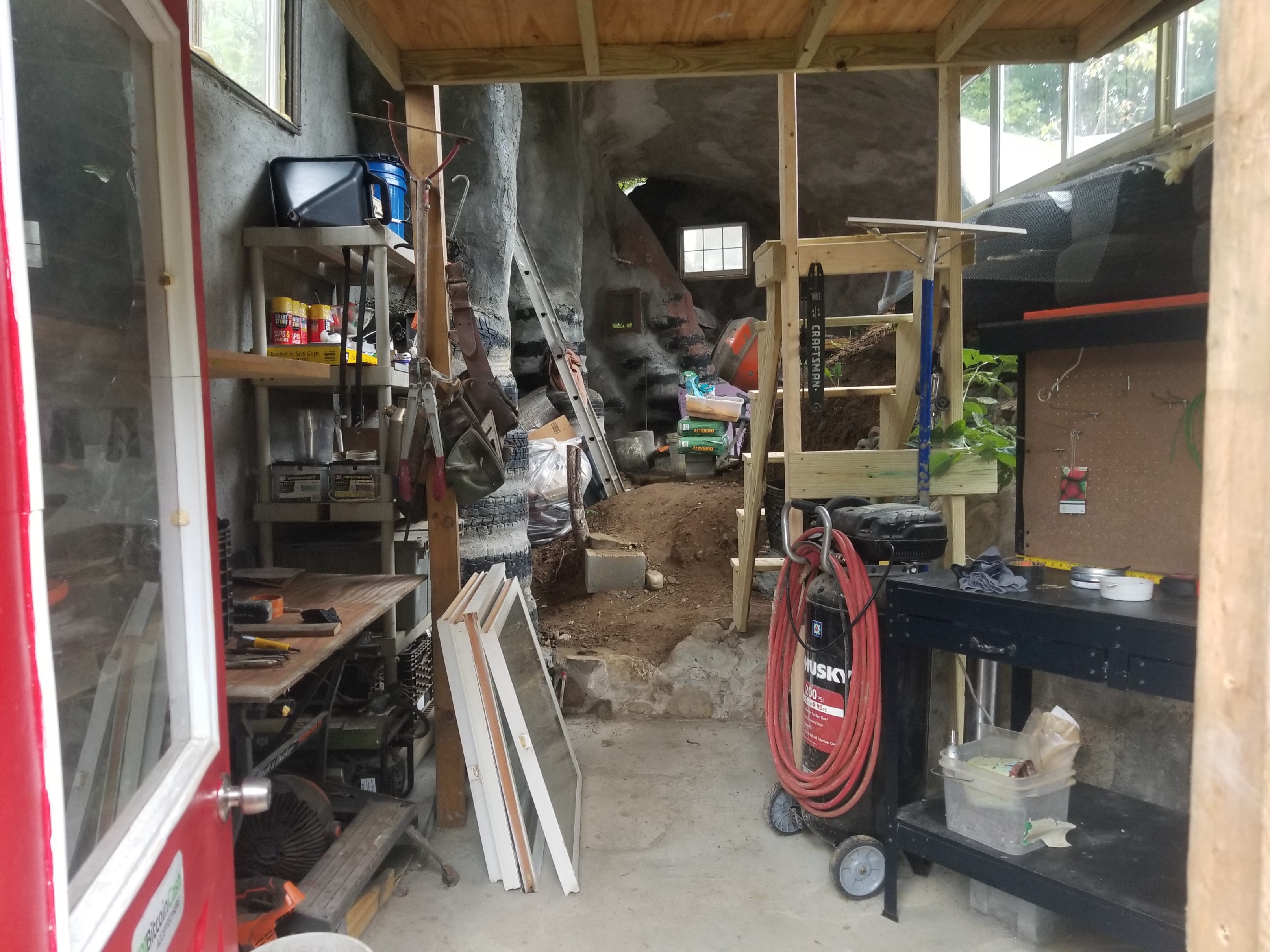 After moving all the tools from the old entry room to the lower bay of the new Entry Hall, there is finally a degree of organization and separation between the tools and the living space.
