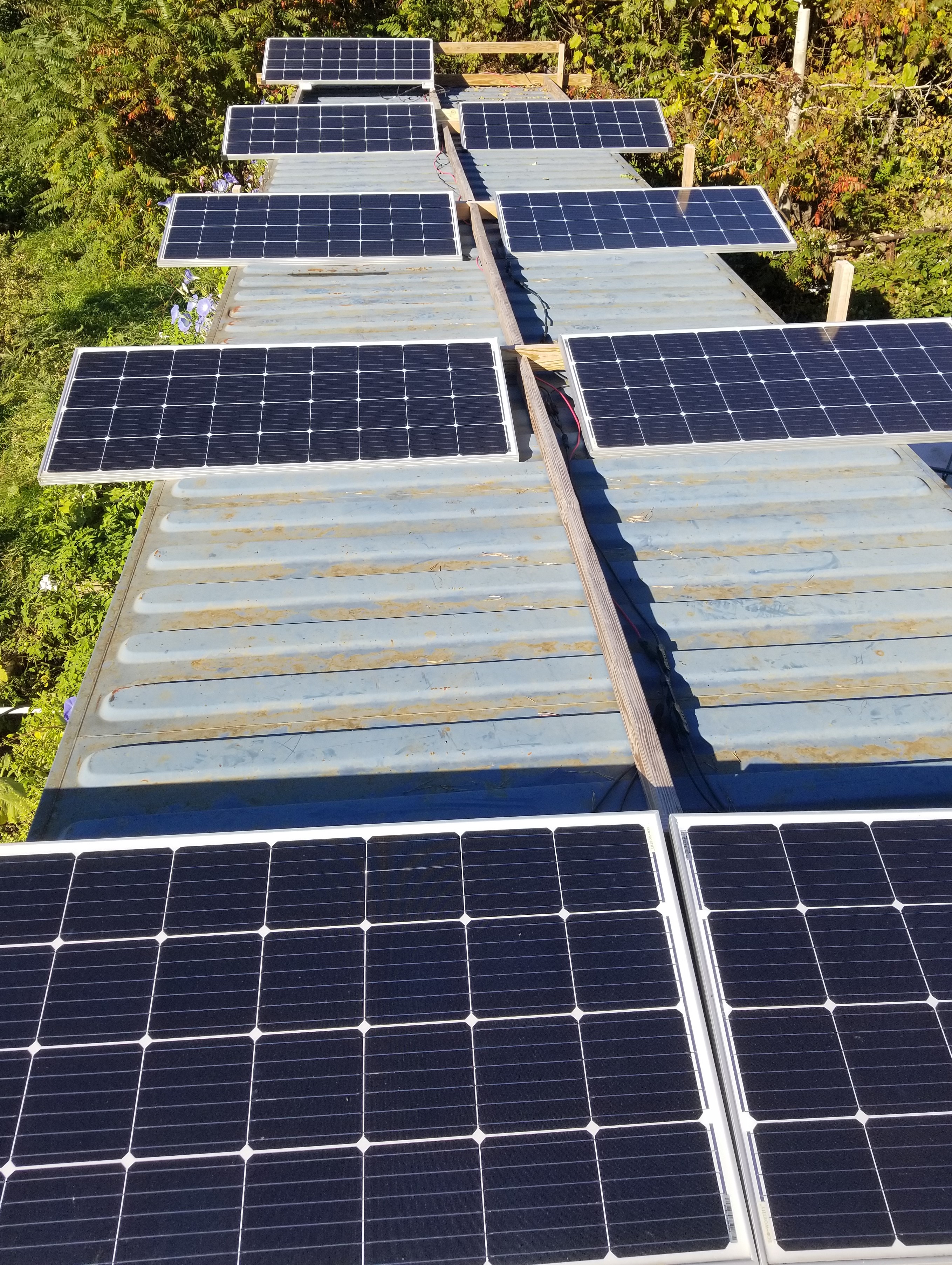 The 3 panels are wired in series, then connected in parallel to the original array of 6 panels.