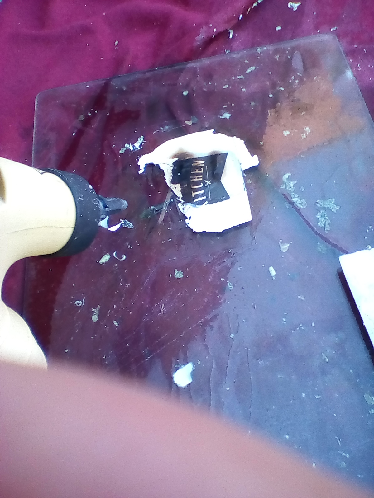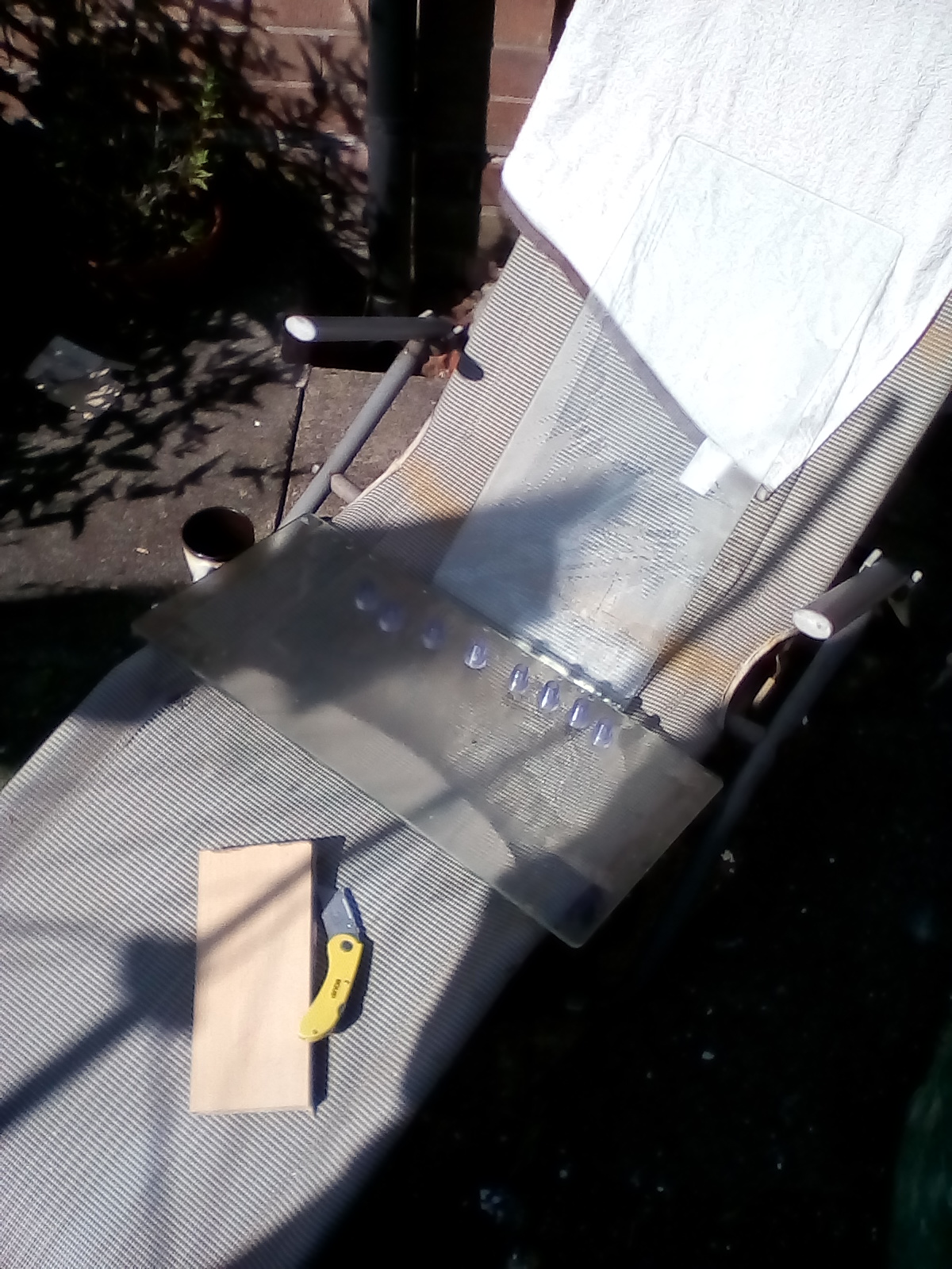 Today I was offered these 2 oven hob covers made from glass but someone had turned the hob on without removing them so they were burnt and looked like junk. I thought i would clean them up and make something cool with them.