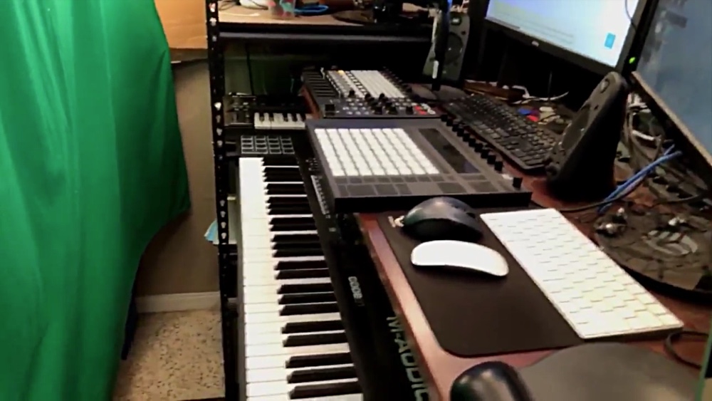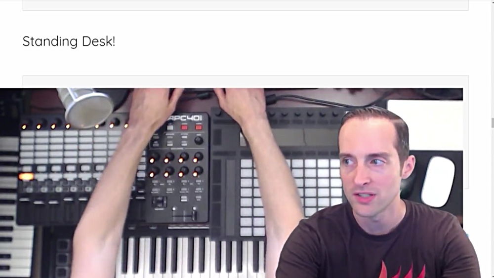 I've never felt better standing up. My body has never felt better, not even being a teenager. I love standing up. A standing desk makes a huge difference in my equipment. It allows me space for all this equipment as well because it would be hard for me to play, especially these MIDI controllers. It would be difficult to play when sitting down and be able to type on my keyboard.