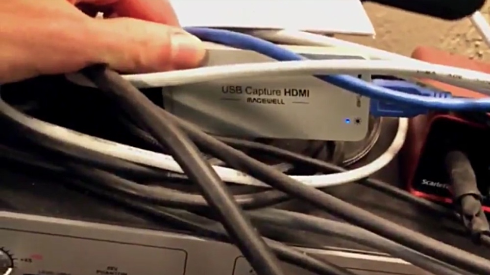 This makes a huge difference because what this allows me to do is leave everything in position. I have a capture card down here, and anything I put on that capture card directly goes into Wirecast and I can record it.