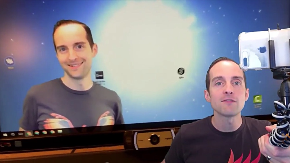 I could use a more expensive option, but I want a nice thin webcam because then I can have a second monitor for chat above it. @tomasgeorge uses a fancier camera than I've got, which gives him a good picture, but then he doesn't have room for a second monitor. It looks like I'm looking very closely into the camera, but I really can read the chat right above this.