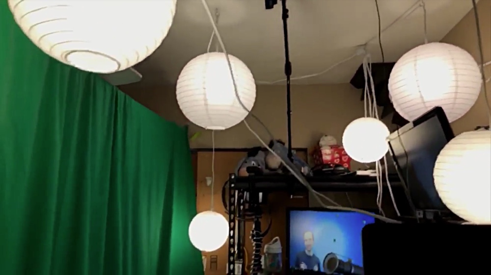 I've got these lights that evenly line me, I've got this green screen, and I've got this walk-in setup. When you have got this walk-in setup, that saves a ton of time every day and it also makes it not such a big deal in the mind.