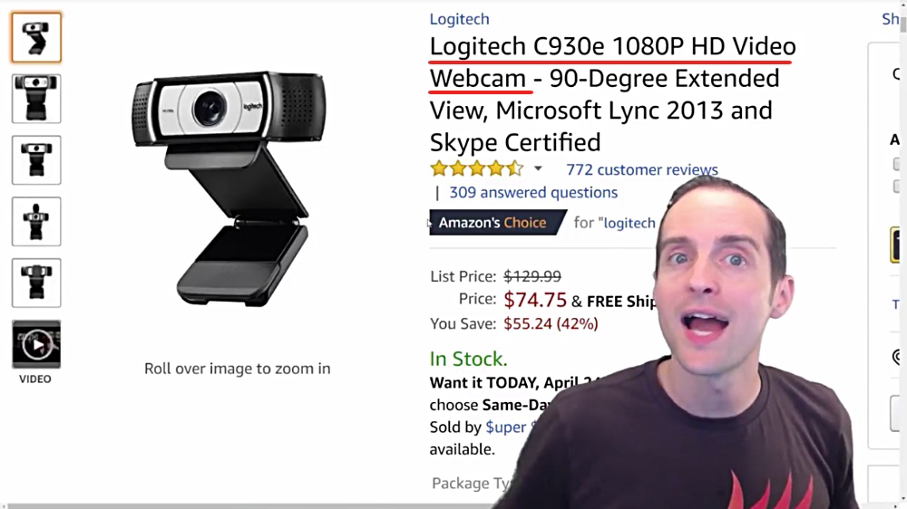 I've got the Logitech C930e webcam after trying a lot of different cameras, five or six, seven if you count the built-in ones, maybe even eight cameras.