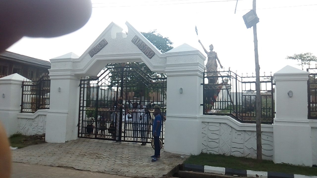 The main entrance gate to the Moremi Ajasoro statue.