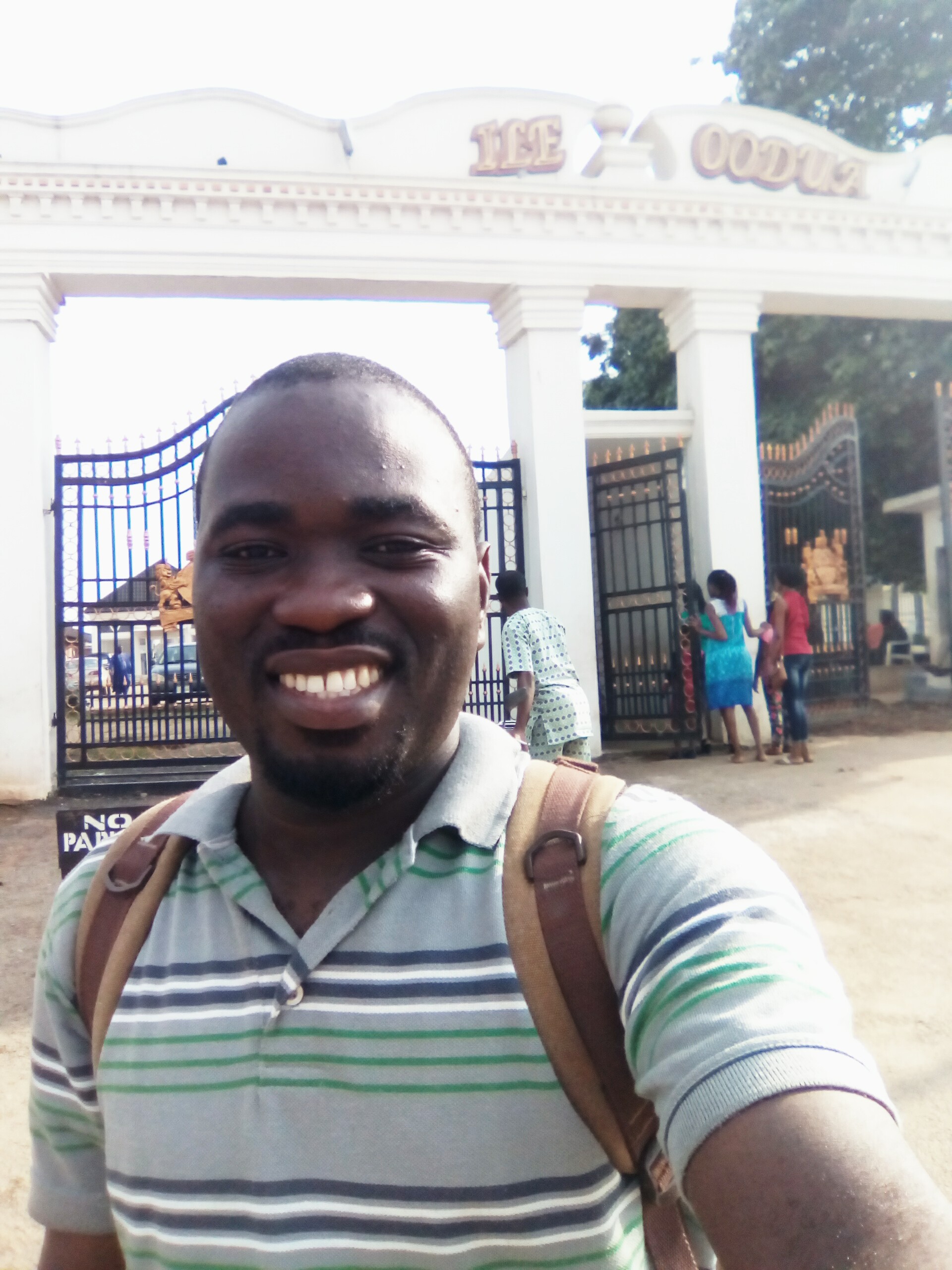 Visit to Opa Oranmiyan shrine and groove; I was opportuned to see for the first time in my life the shrine and the Opa Oranmiyan's groove which I was very scared of entering in the first place but I was later told to enter with all my prayer intension been said. On my way to the shrine I met a white woman who also came for a visit or tour just like me. She was very happy but scared a bit also. This was the main entrance gate and the Opa Oranmiyan itself with so many eyes on it just like nails more than 100 if I can still recollect.