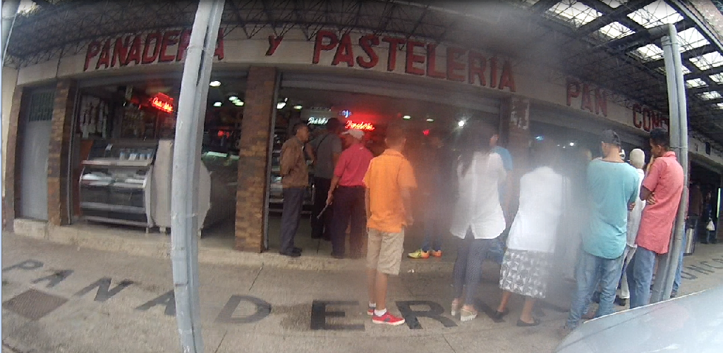 People waiting in line and waiting for the bread to come out for sale, because as flour is not available, bread is also scarce. The flour is bought by the bakers in Colombia, so eating bread in Venezuela is a luxury because its price is high.