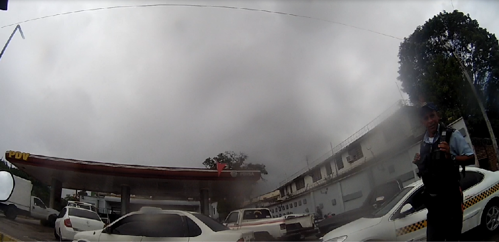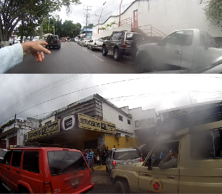 When I was filming, this policeman approached me and, scared, he asked me, are you making a documentary? I answered that yes, about the queues in Venezuela, they get scared because they think they are being recorded, because they charge the cars to let them pass without queuing that is their business.